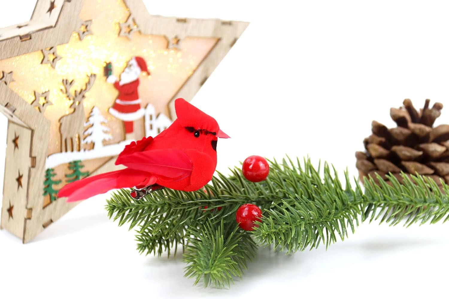 - Set of 12 cardinal birds Christmas clip on ornaments. These little red birds are very lifelike with cute details, add a pop of color to your tree or holiday crafts