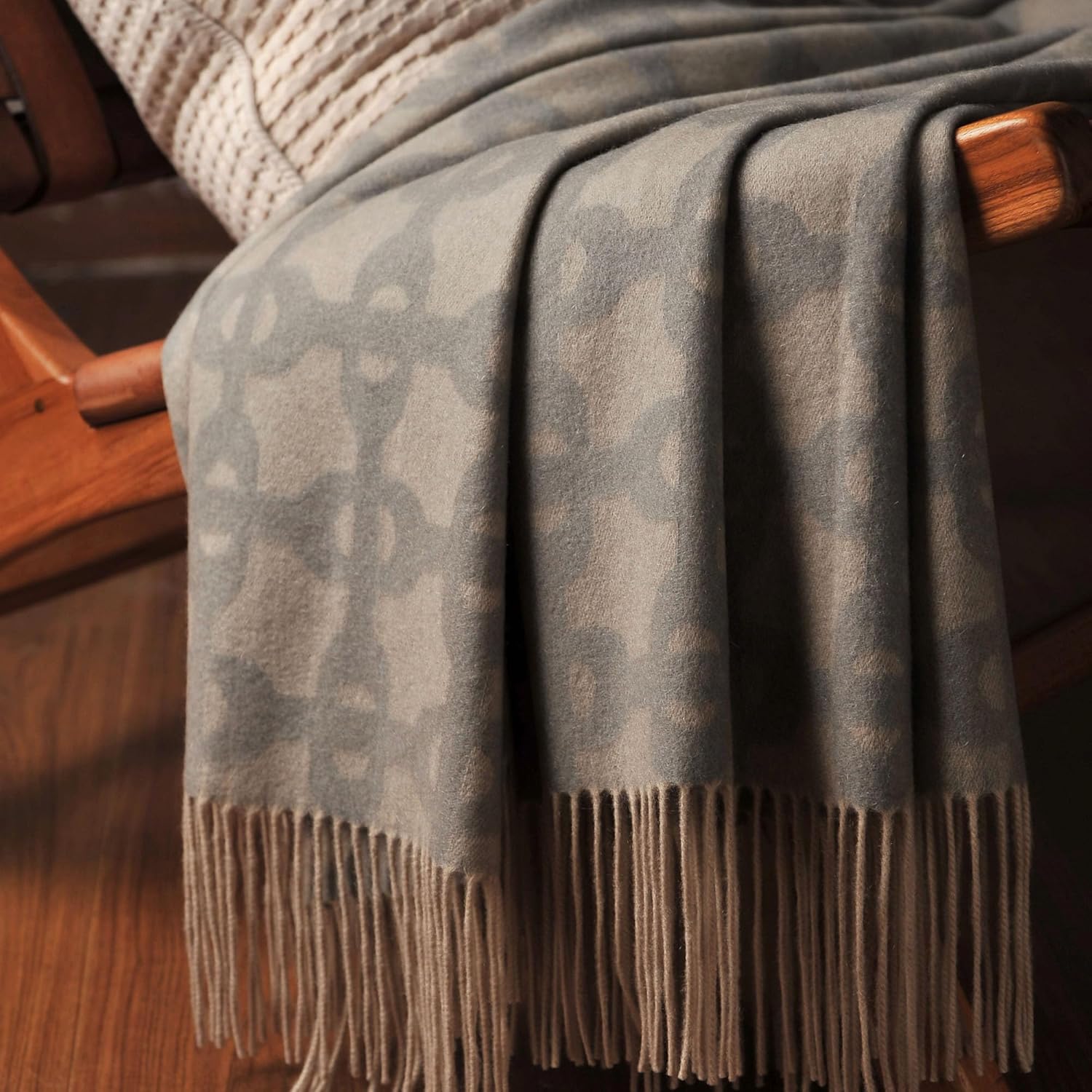 CUDDLE DREAMS Premium Cashmere Throw Blanket with Fringe, Luxuriously Soft (Chain Jacquard)