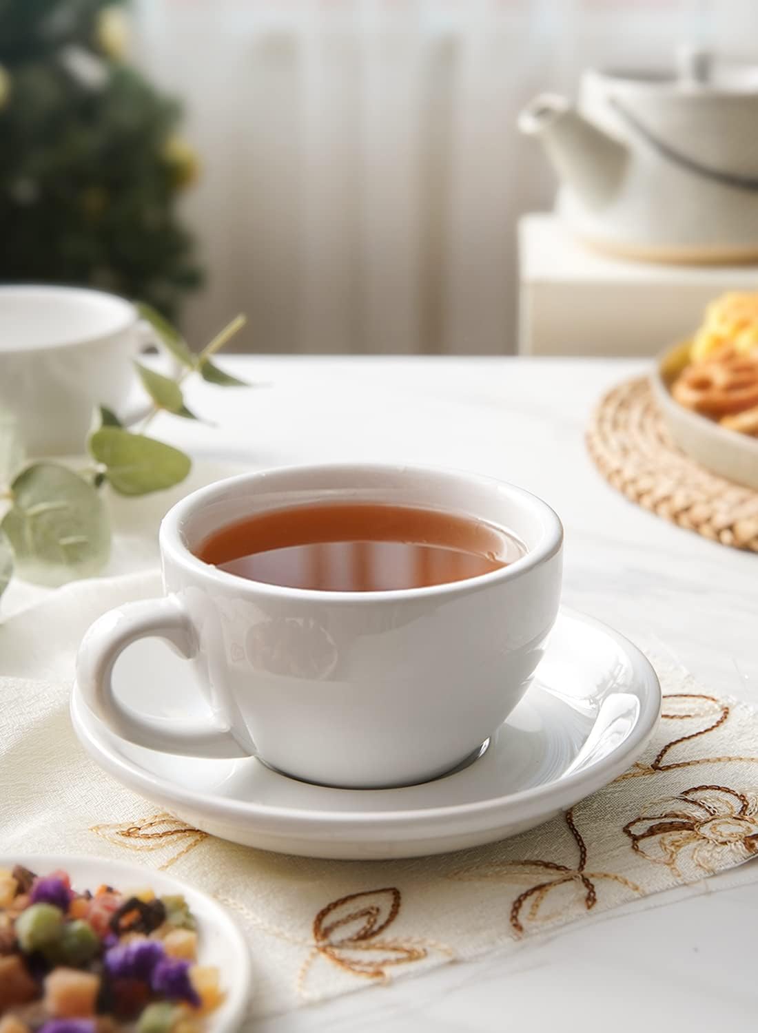 LE TAUCI 8 oz Cappuccino Cups with Saucers, Heavyweight Ceramic Large Coffee Cup for Au Lait, Double shot, Latte, Cafe Mocha, Tea - Dishwasher Safe, Set of 4, White