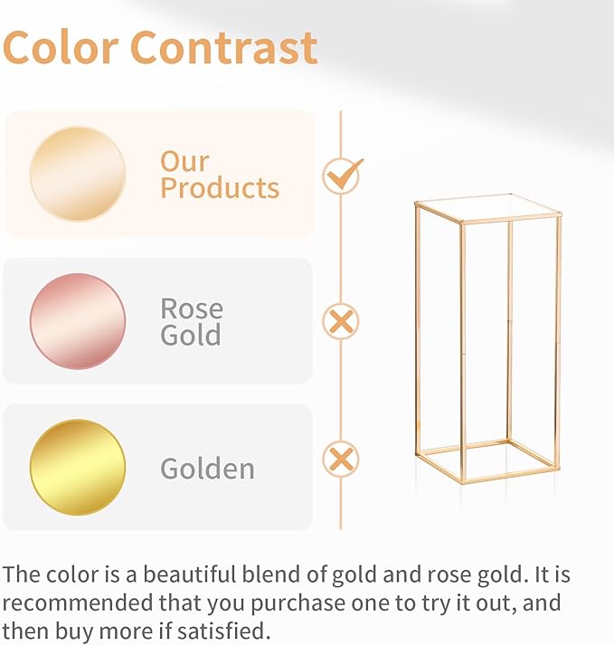 - SIZE: Our geometric flower stand is 60cm/ 23.6 inches tall. It's width and length is 25cm/9.84 inches. The simple column cube shape makes the flower stand more stable. Place these centerpieces of the wedding and add an extra elegance to the arrangements.