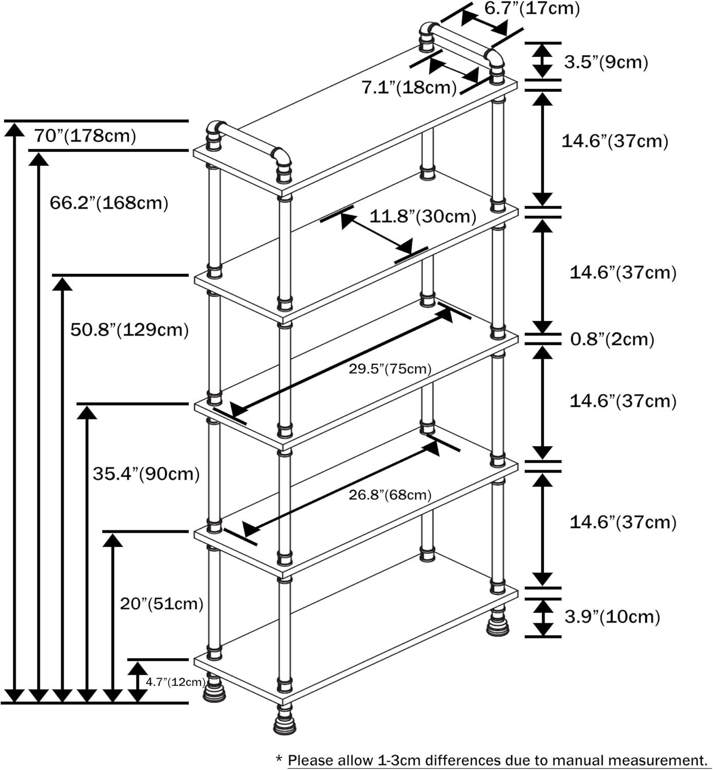 - ππππππ πππ πππππππ: Made from real 20mm wood and 25mm metal pipe, finished with a polished black color. This large open shelf bookcase is extremely sturdy and durable. The maximum safe load of each shelf is 50 lbs. With durable construction and a minimalist design, this modern-style bookshelf provides convenient storage for the bedroom or home office or a tasteful display area next to any entertainment console.