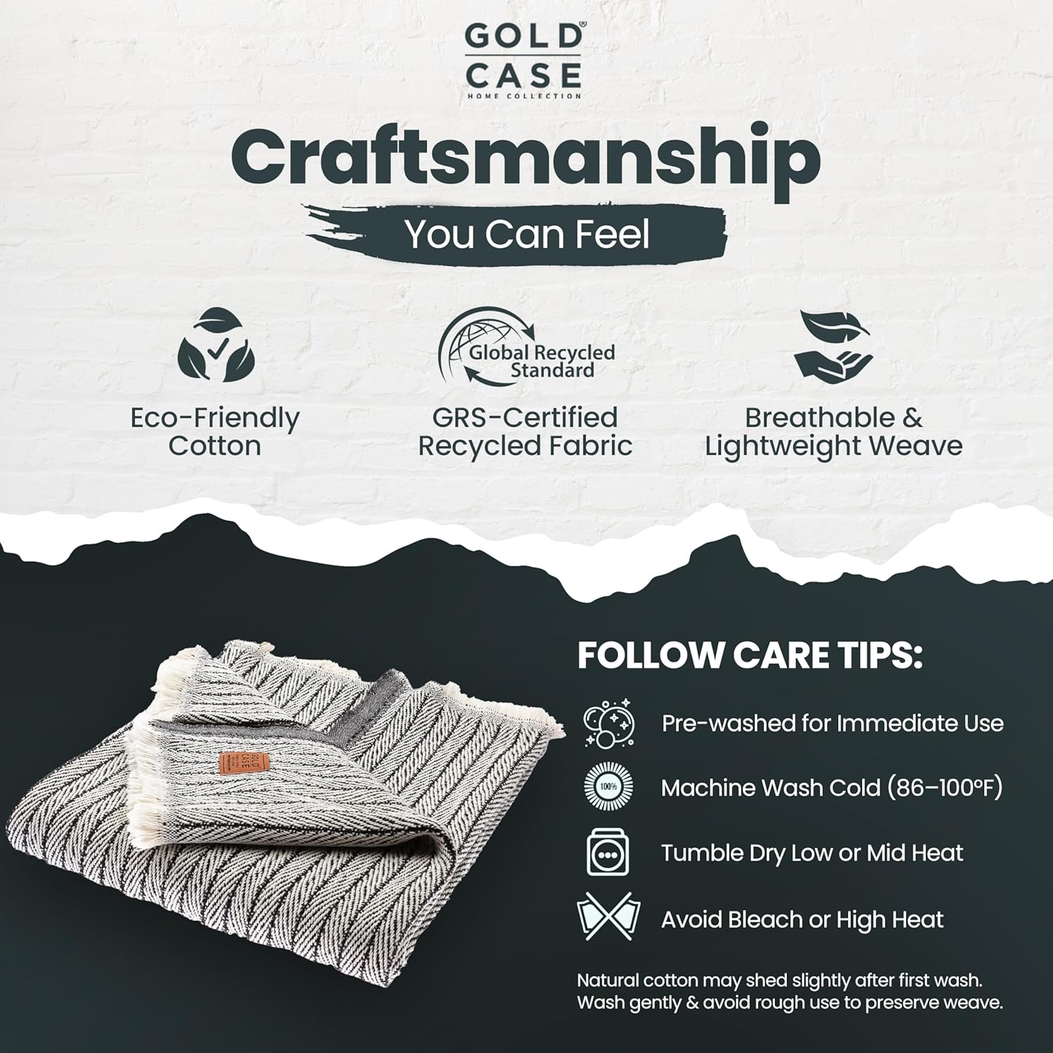 Gold Case Throw Blanket for Couch – 100% Recycled Turkish Cotton Blankets & Throws – Elegant Decorative Throw Blankets for Living Room Sofa – Woven Throws for Couch – Retro Black – 50x60