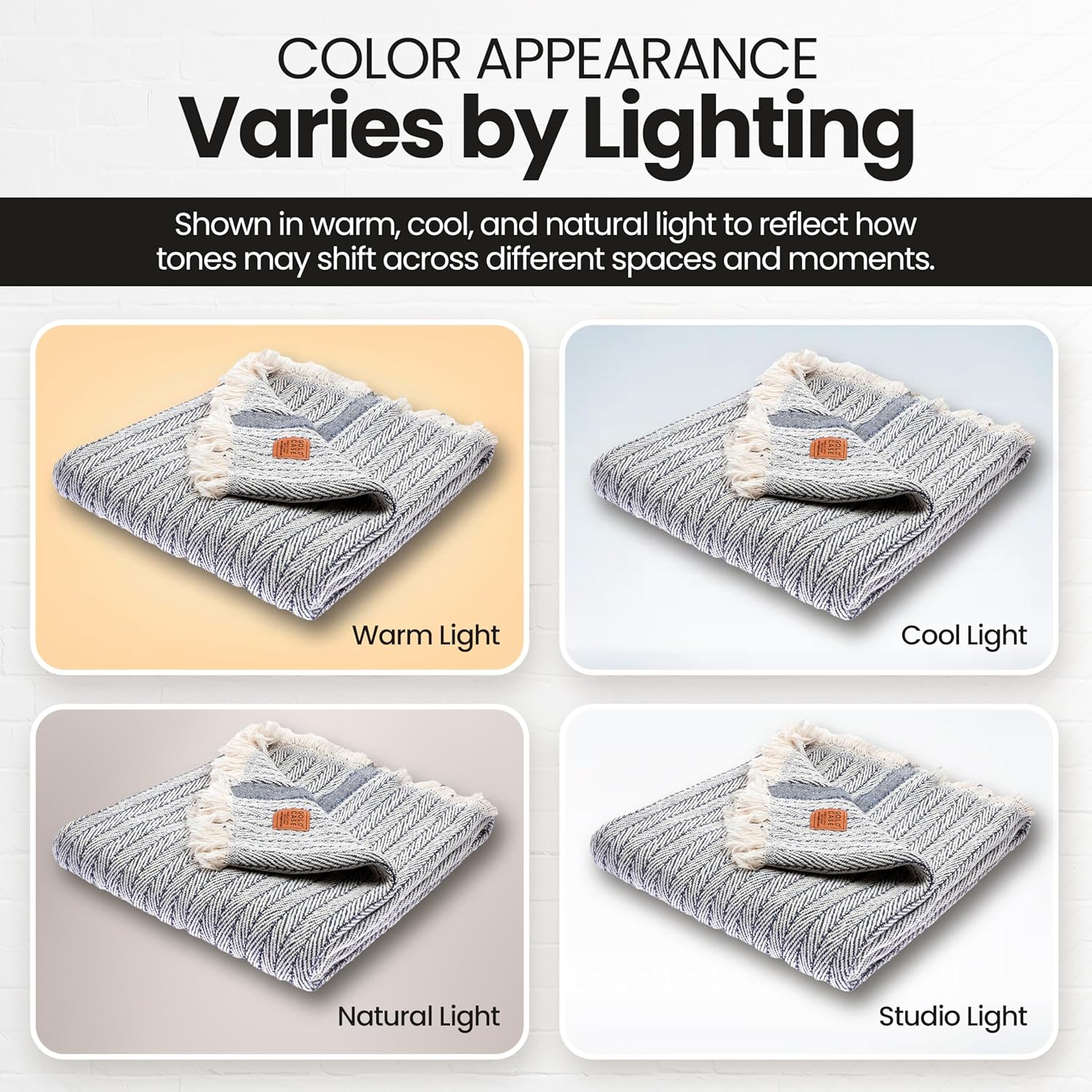 - CRAFTSMANSHIP BEYOND COMPARE: Made with natural, recycled cotton, our blanket throw is a testament to quality; with Global Recycle Standard certification by GCL International, every thread of our sofa blanket is responsibly sourced and woven with care