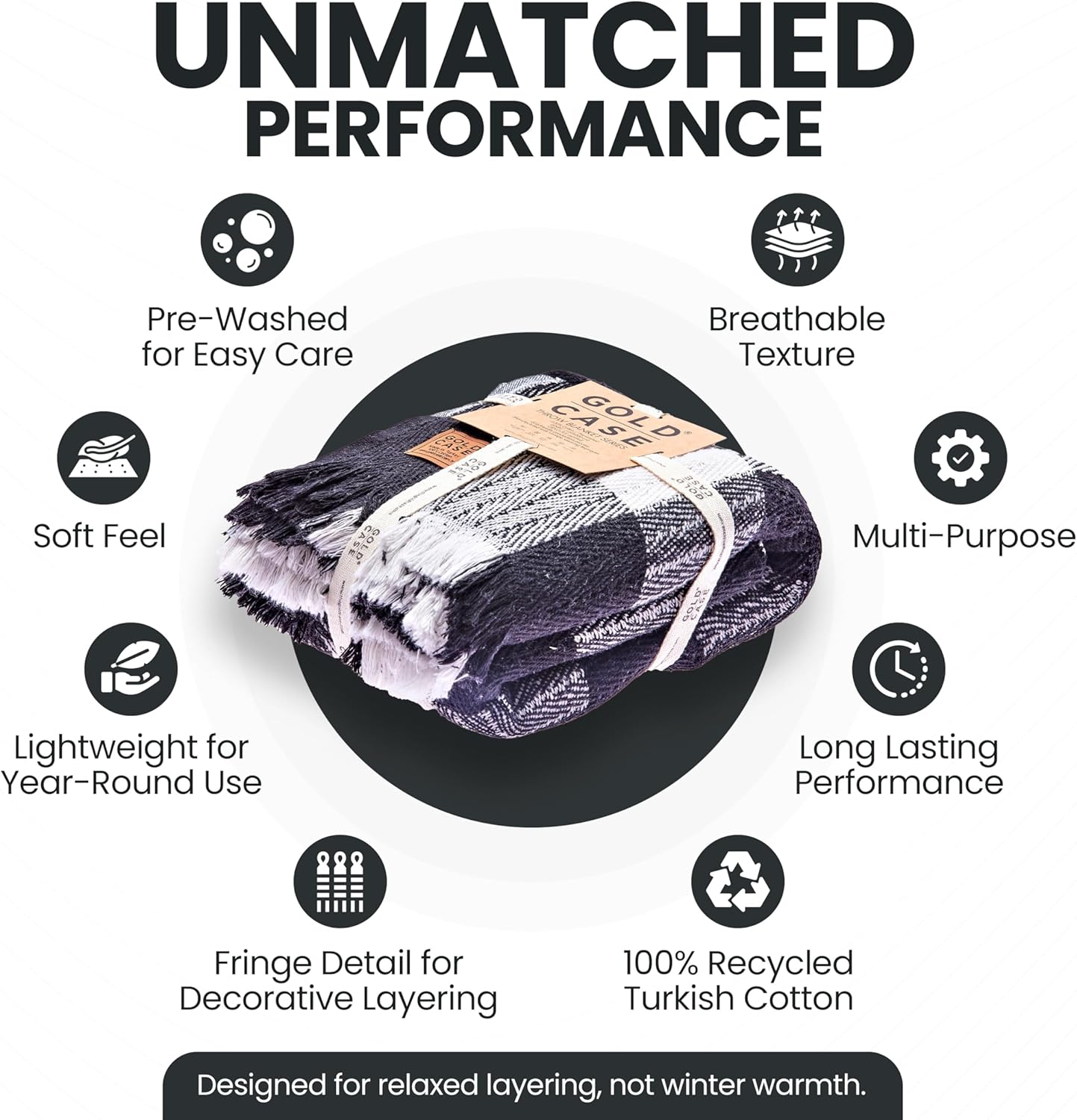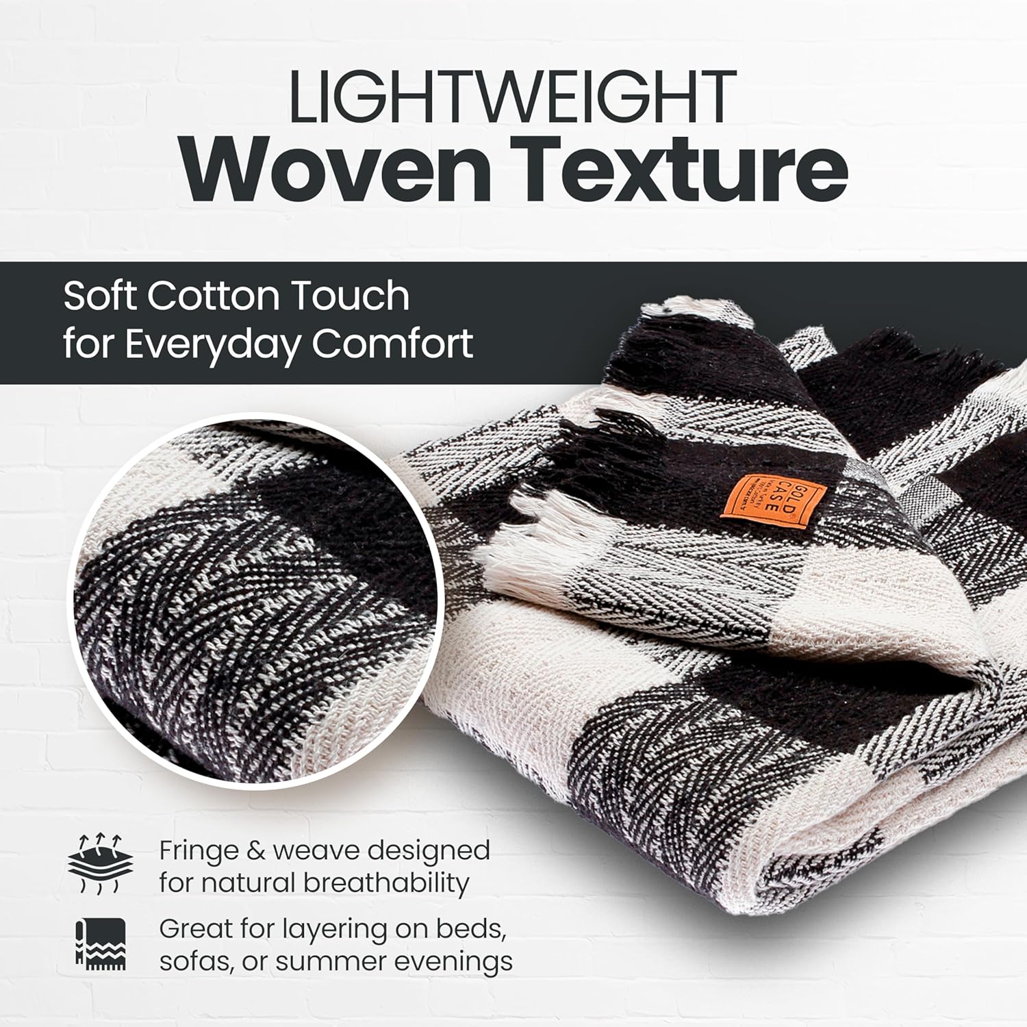 Gold Case Throw Blanket for Couch - 100% Recycled Turkish Cotton Blankets & Throws - Buffalo Soft Throw Blankets for Living Room - Boho Decorative Woven Couch Blanket - 60x80 - Black