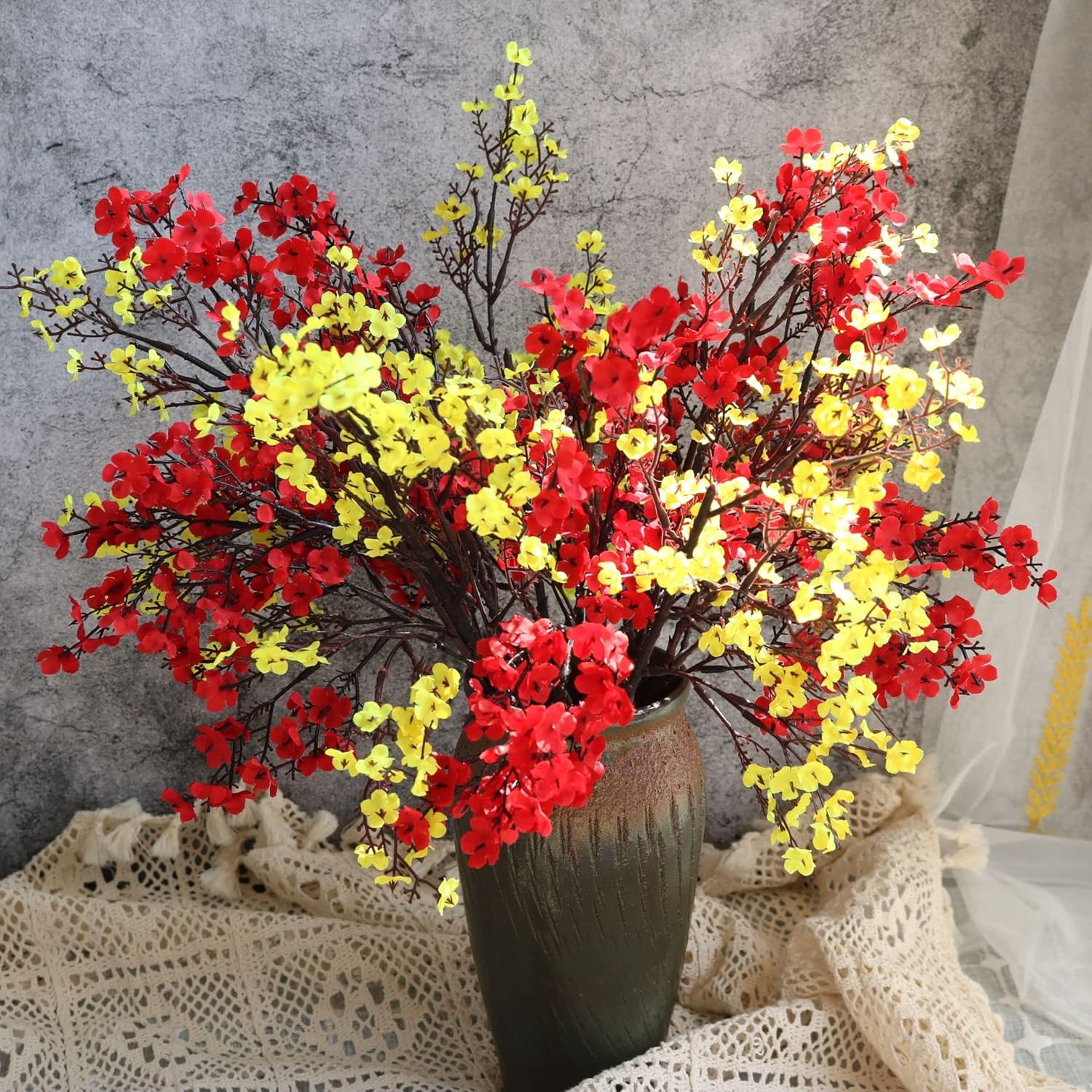 - MATERIAL: The artificial baby's breathes are made of silk and plastic, durable for years and remain vivid; The stem is internally wired, flexible and easy for flower arrangement