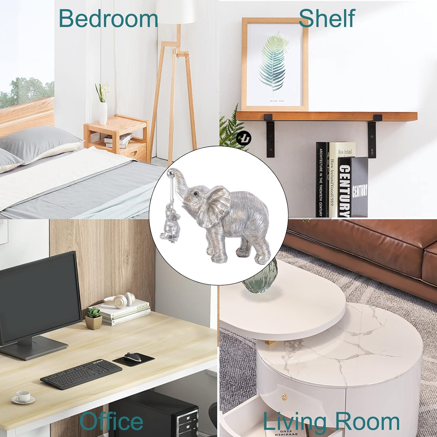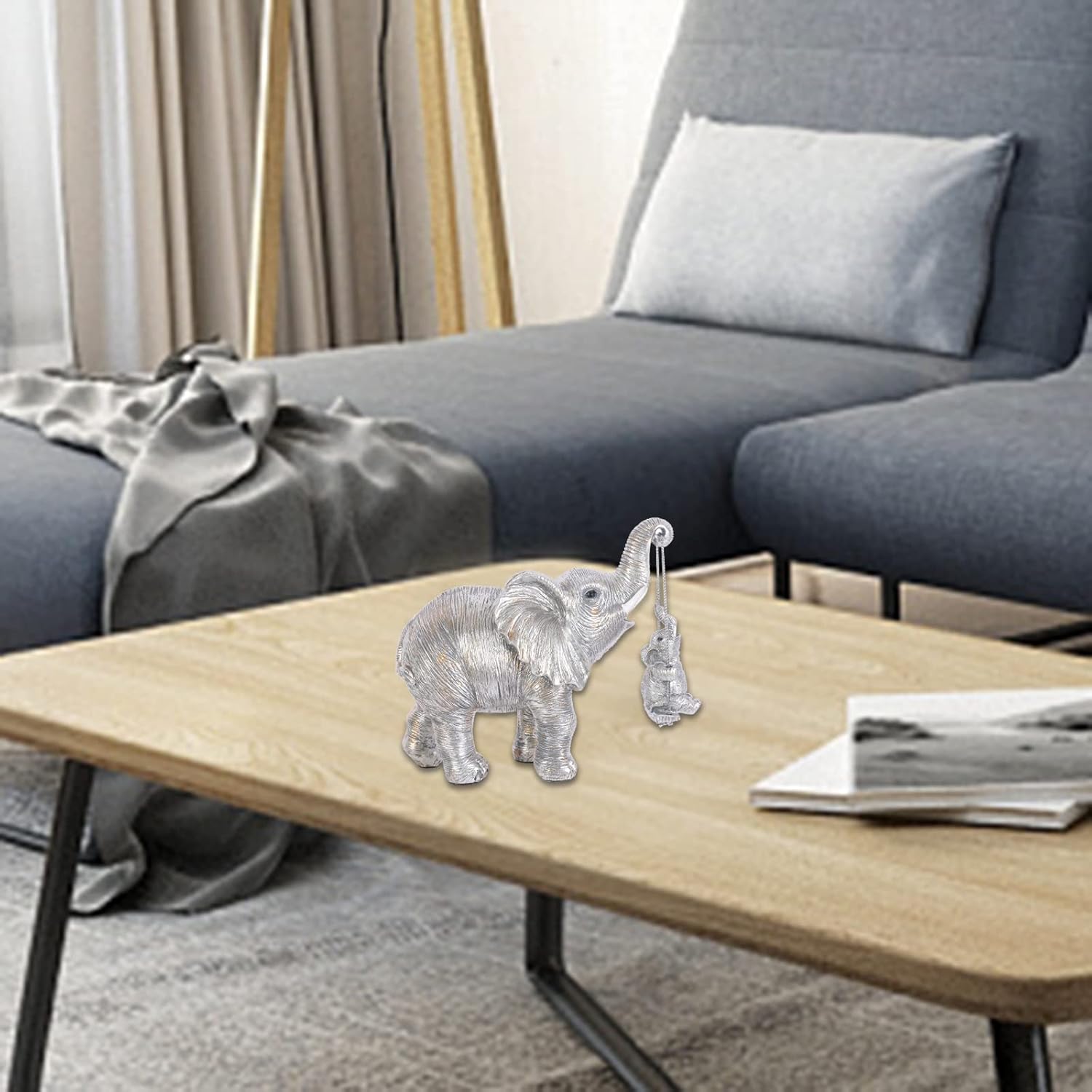 Cute Elephant Statue Silver Elephant Animal Accents Brings Good Luck, Health, Strength Decorations for Home, Shelf, Living Room