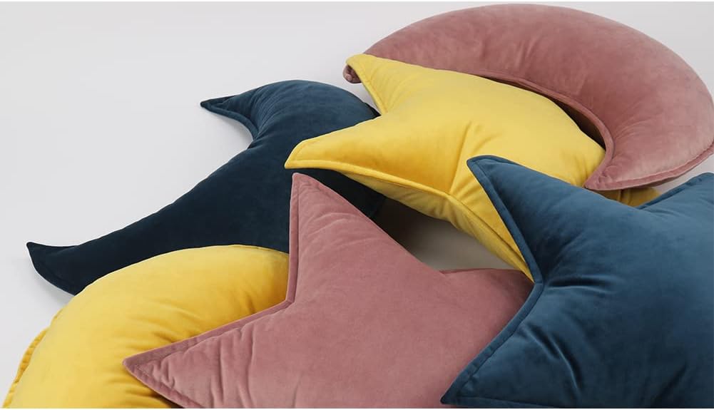 - SAFE MATERIAL - JIKAL velvet star & moon shaped pillows are made of quality super soft velvet pillow case and filled with high density microfibers