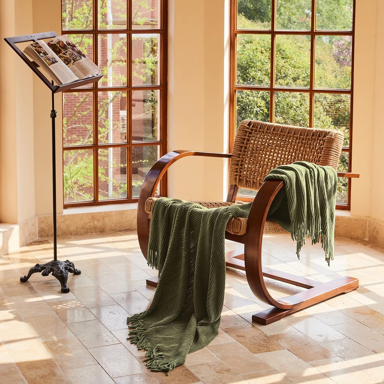 lifein Throw Blanket for Couch, Soft Green Boho Decor Bed Throw,Cozy Knitted Chenille Farmhouse Lightweight Throw(Olive Green,50 * 60")