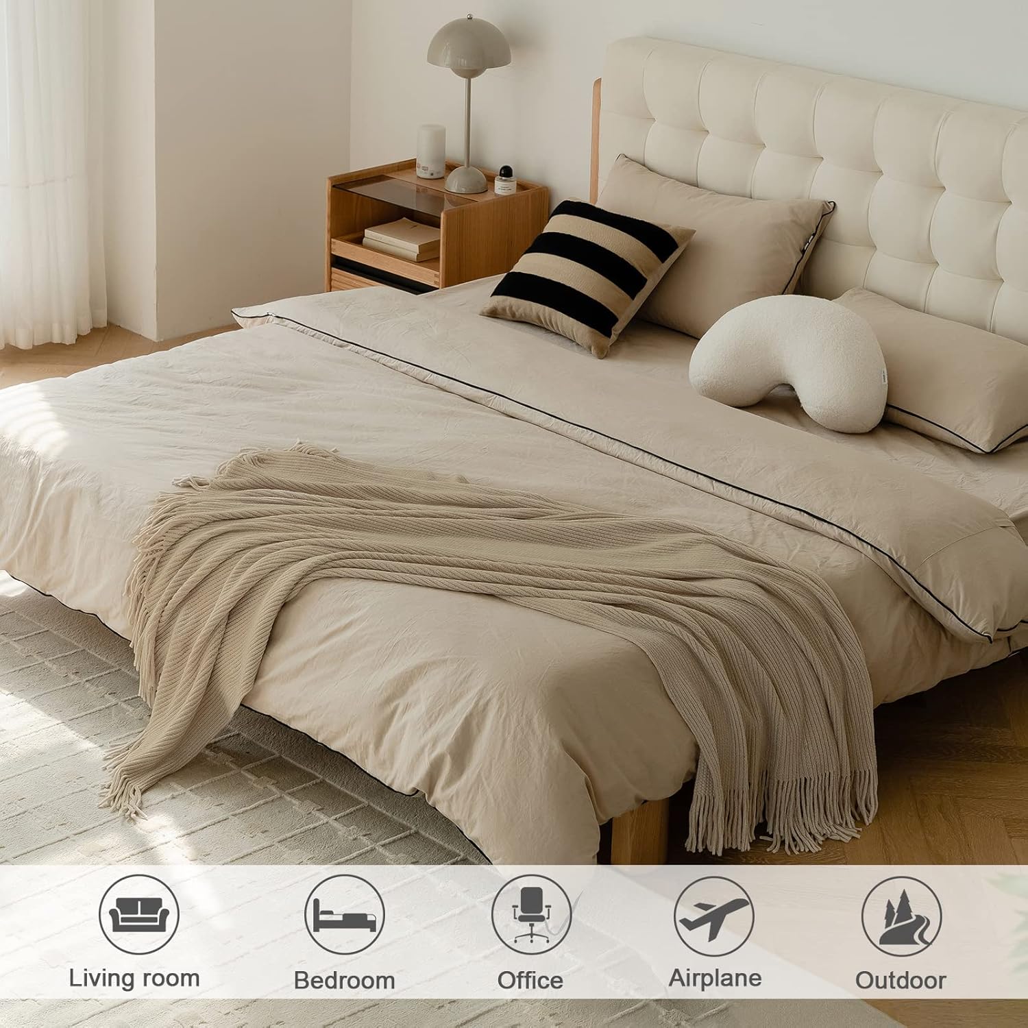 - 【ALL SEASON USE】LIFEIN couch throw blanket is your ideal choice for spring throw blanket, its farmhouse style match blooming spring perfectly.In summer it turns to be a cooling blanket, its lightweight & breathable keep you warm in A/C room. Having this beige throw blanket in autumn is always so elegant, what a dream fall throw blanket! As a winter throw ,it nimbly be a shawl or scarf to warm you up outdoors, don't you want such a soft throw blanket?