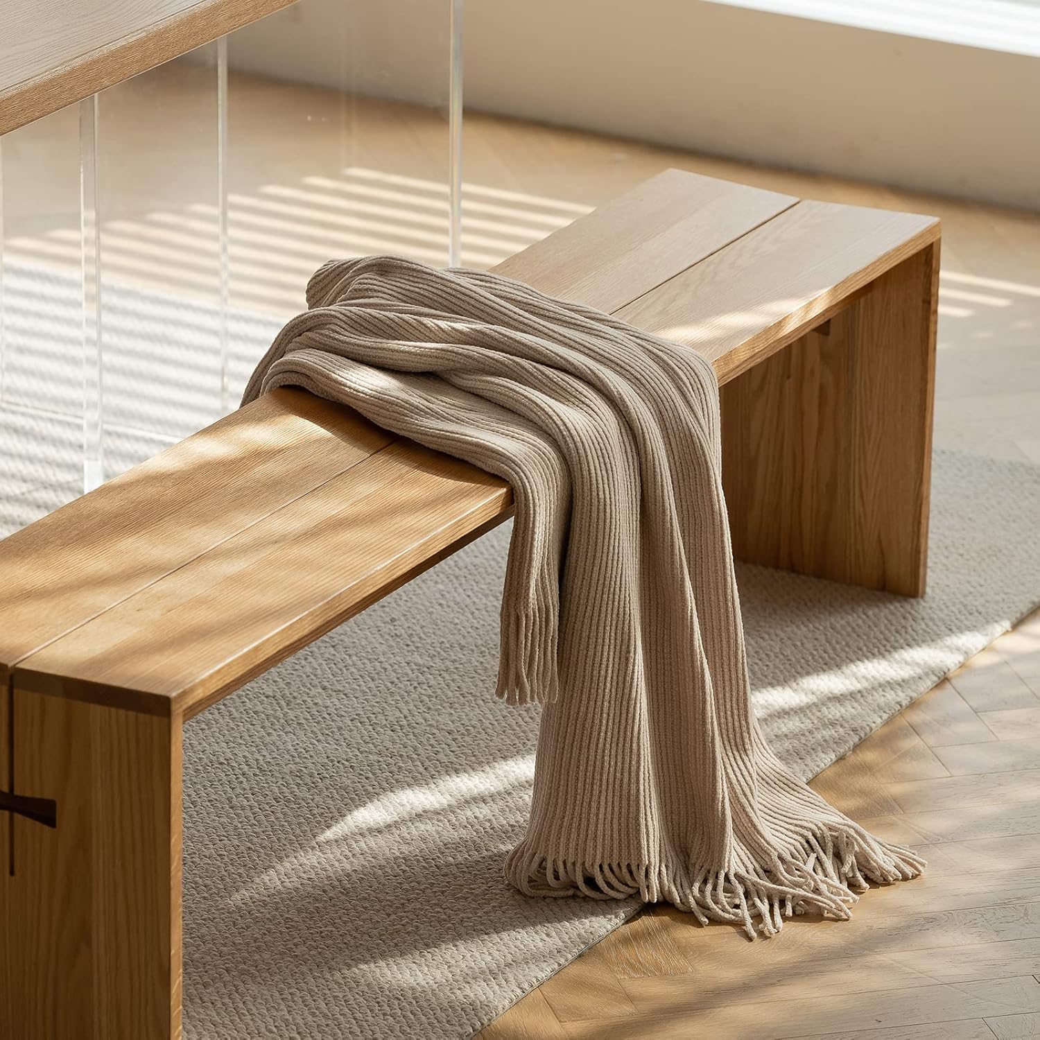 - 【FANTASTICAL DESGIN】LIFEIN throw blanket for couch nicely neutral solid knit design and well-arranged rustic farmhouse style fringes, this knitted throw blanket is in kinda beige/light tan/light taupe, which is a pretty easy way to match your room to add an extra solid neutral beige/tan boho feature, don't you want have a beige throw blanket for your home decor?