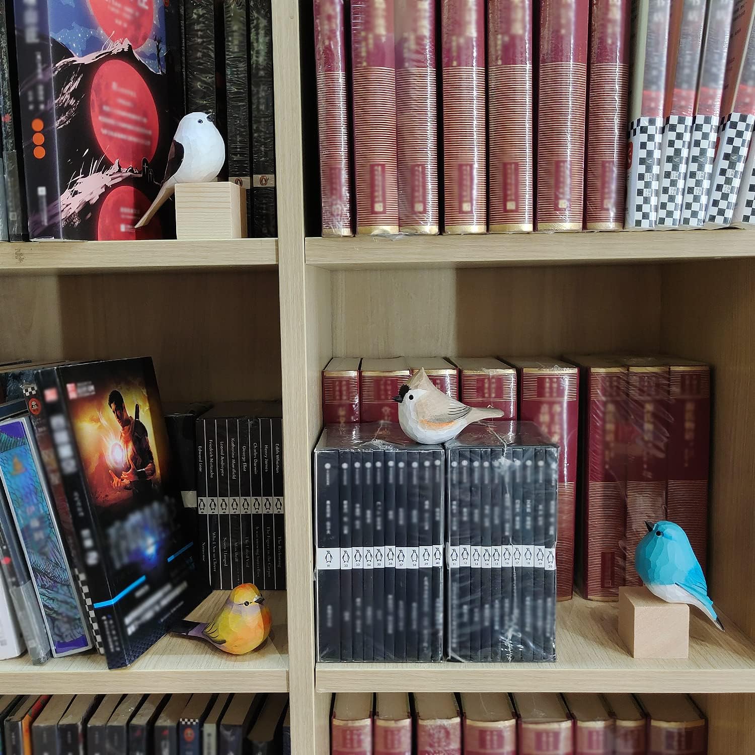 Handmade Wooden Carved Bird Decor Sculpted Hand-Painted Bird Figurines Small Home Decor Bird Statue Shelf Decor BFF Gifts for Bird Lovers (Suit 2)