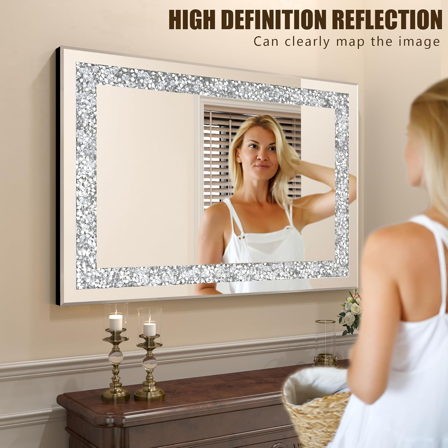 - Size: 23.6"x35.4" of the mirrors for wall decor bedroom.The rectangle shaped frameless mirror design features sparkly twinkle bling crystal crush diamond