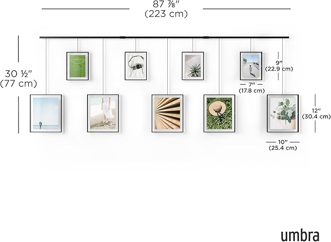 - MULTI-PHOTO WALL DISPLAY: Display your favorite photos in an eye-catching fashion using these hanging, gallery-style frames suspended from a modern and sleek beam; holds four 5x7 and five 8x10 photos