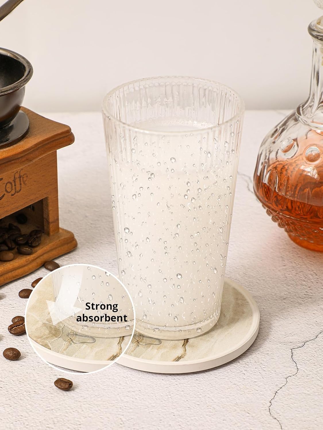 - Strong Absorption: Coasters for drinks are made to absorb moisture effectively, this absorbent coasters keep surfaces dry and clean. Perfect for hot and cold drinks, it stands out with superior absorption, leaving no water rings behind