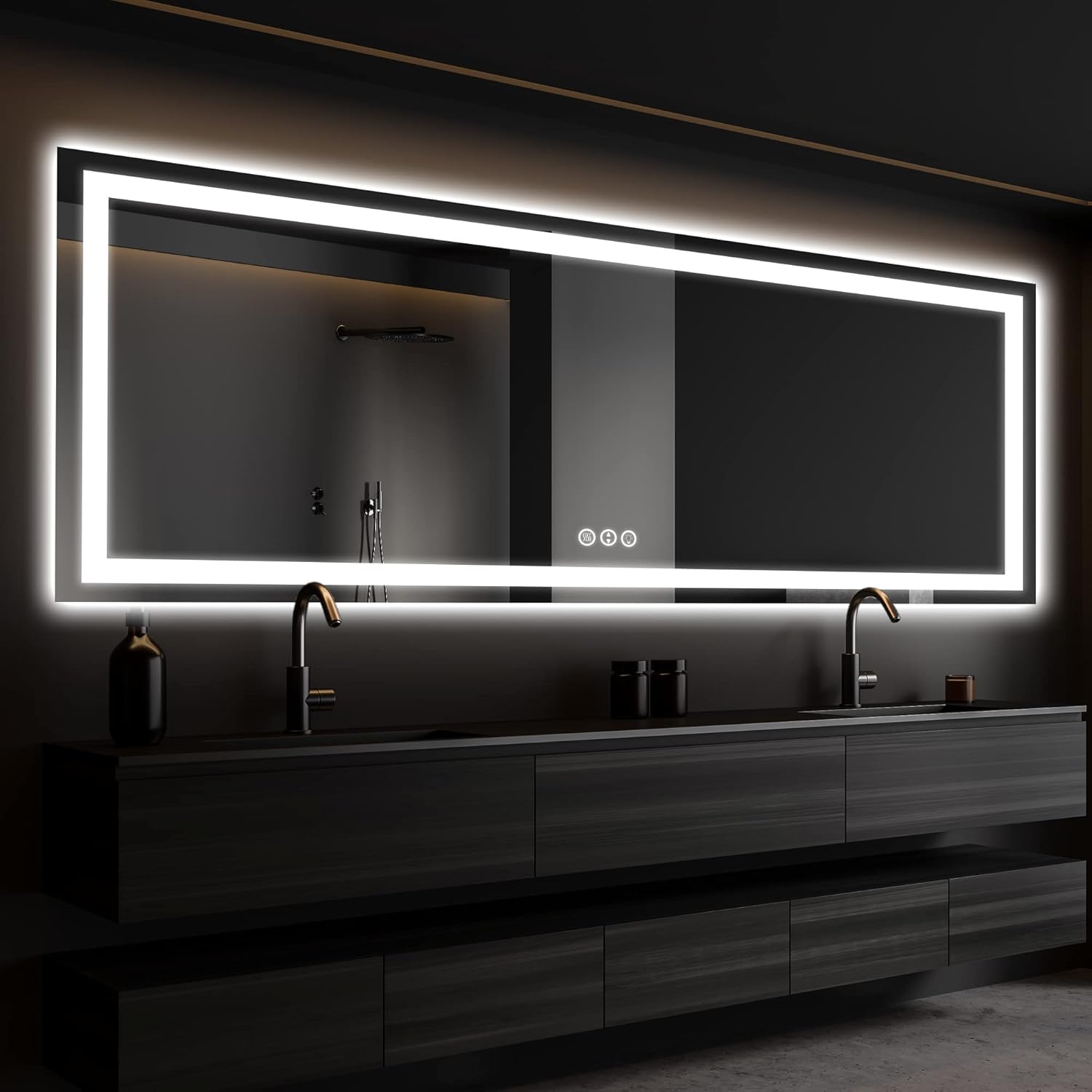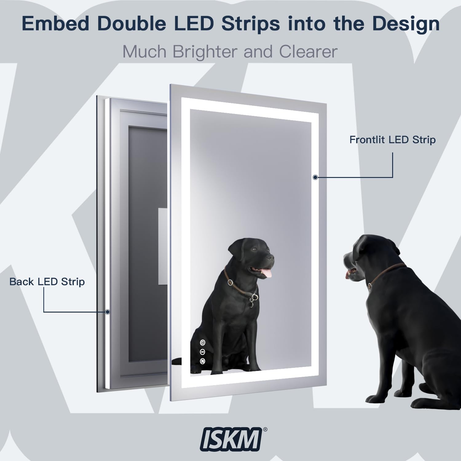 ISKM 72'' x 32'' LED Mirror for Bathroom Lighted Vanity Mirror for Wall Front Lights + Backlit LED Bathroom Mirror Anti-Fog Tempered Glass ETL Listed