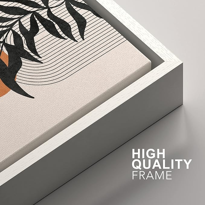 SIGNFORD Framed Canvas Print Wall Art Forest Plant Silhouettes & Mid-Century Symbols Abstract Shapes Illustrations Modern Boho Nature Chic for Living Room, Bedroom, Office - 16"x24"x2 White