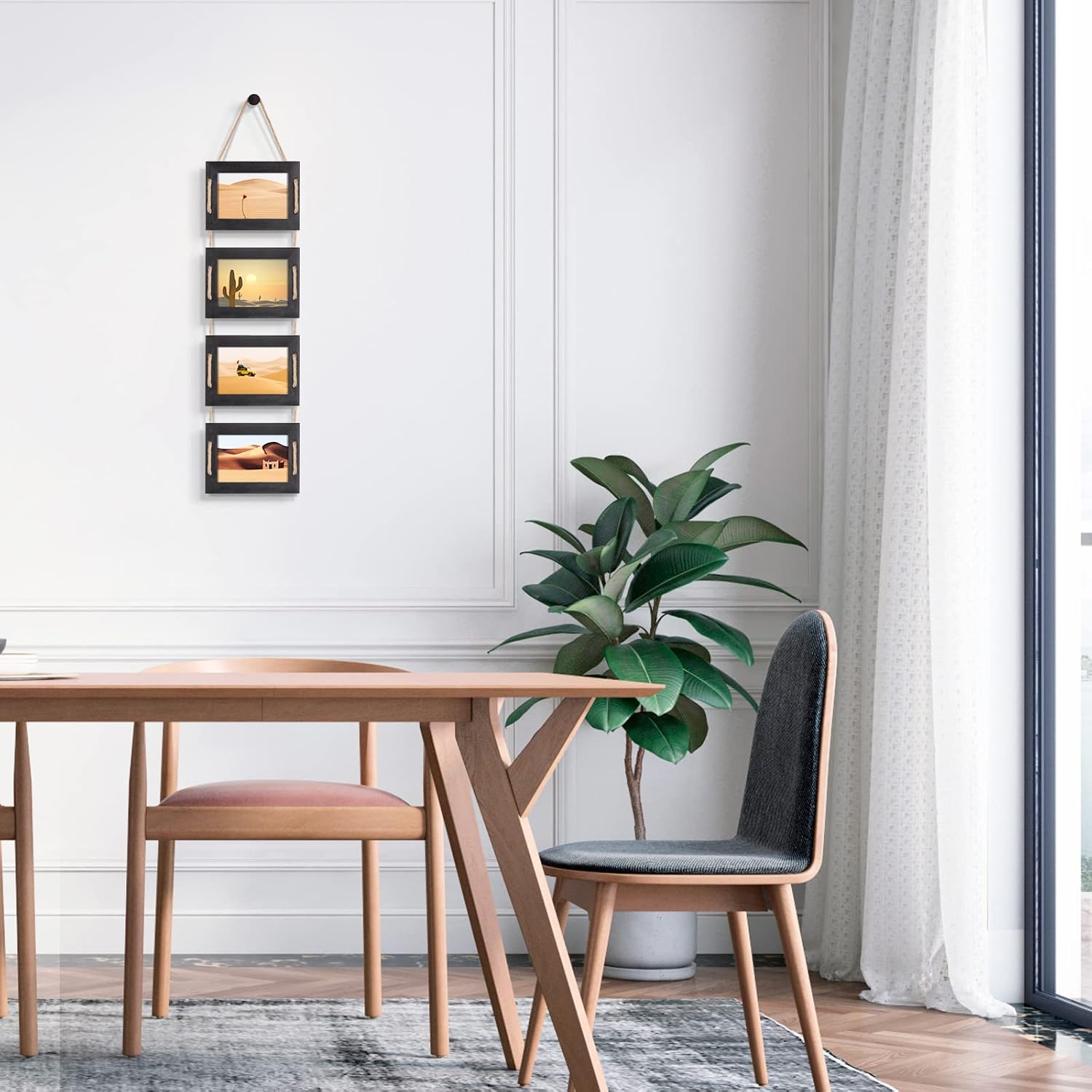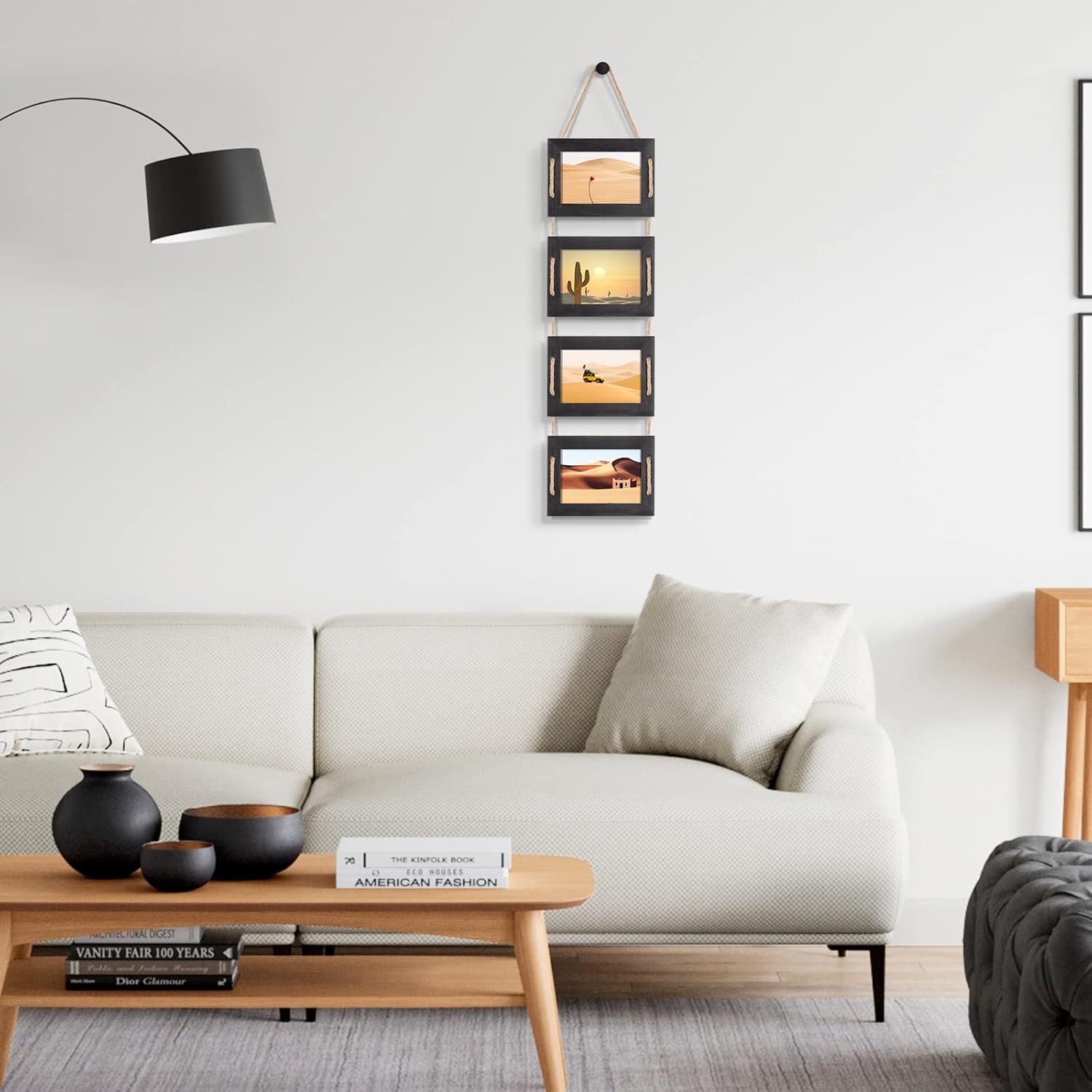 - Decorative Picture Frams Collage Wall Decor: With rope hanging design, this 4-frame hanging picture frames set can be a nice wall decor for your living room, bedroom or any space you want to display your cherished photos.