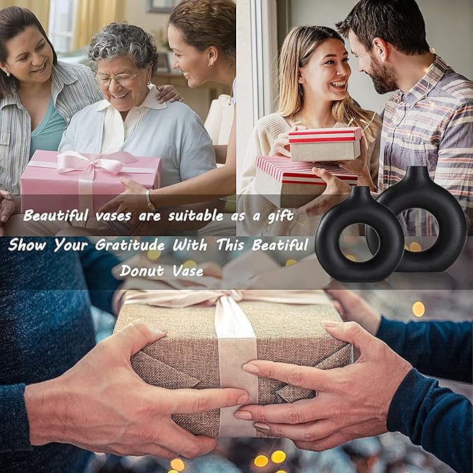 - 🌷【UNIQUE MODERN DESIGN 】– If you are tired of those dull and boring designs, then you will definitely be attracted by these beautiful hollow design white ceramic vases for home décor. The donut design makes the flower vases unique and stylish; you can see through the hollow out while enjoying beautiful flowers in the vase, which adds more romance and fashion to your house.