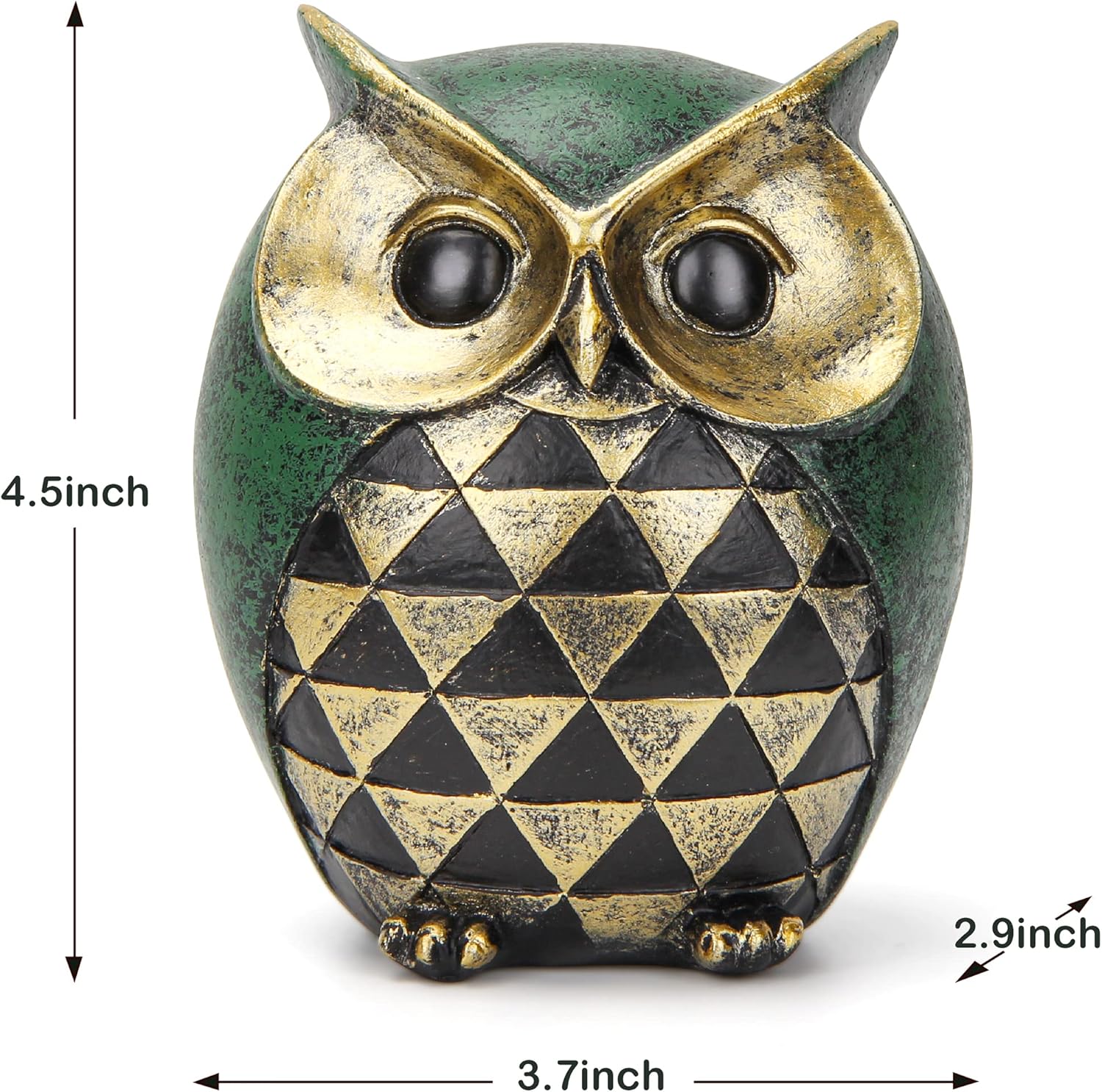 - Premium material:The Owls statue is made of resin material,painting with antique odd Gold/Green color.