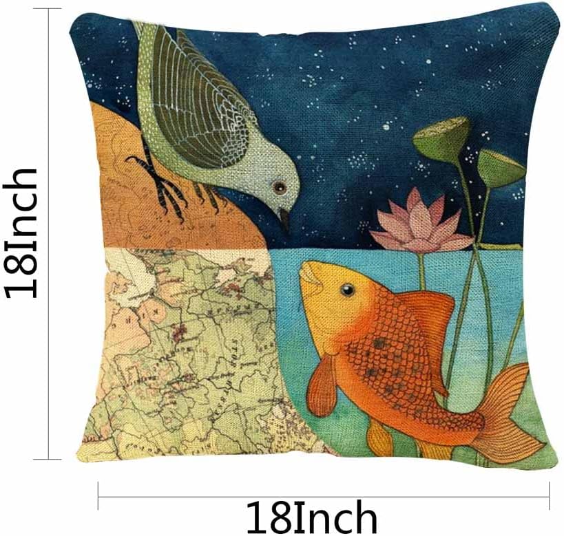 IBILIU Throw Pillow Covers Bird and Fish in The Two World Forever Cushion Pillow Case Home Decor Pillowcase 18x18 Inches