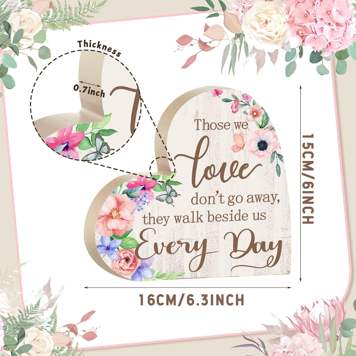 - Sympathy Gift: you will receive a heart shaped wooden sympathy gift with the words " those we love don't go away, they walk beside us every day" , which is a beautiful way to express your remembrance and respect for your loved ones