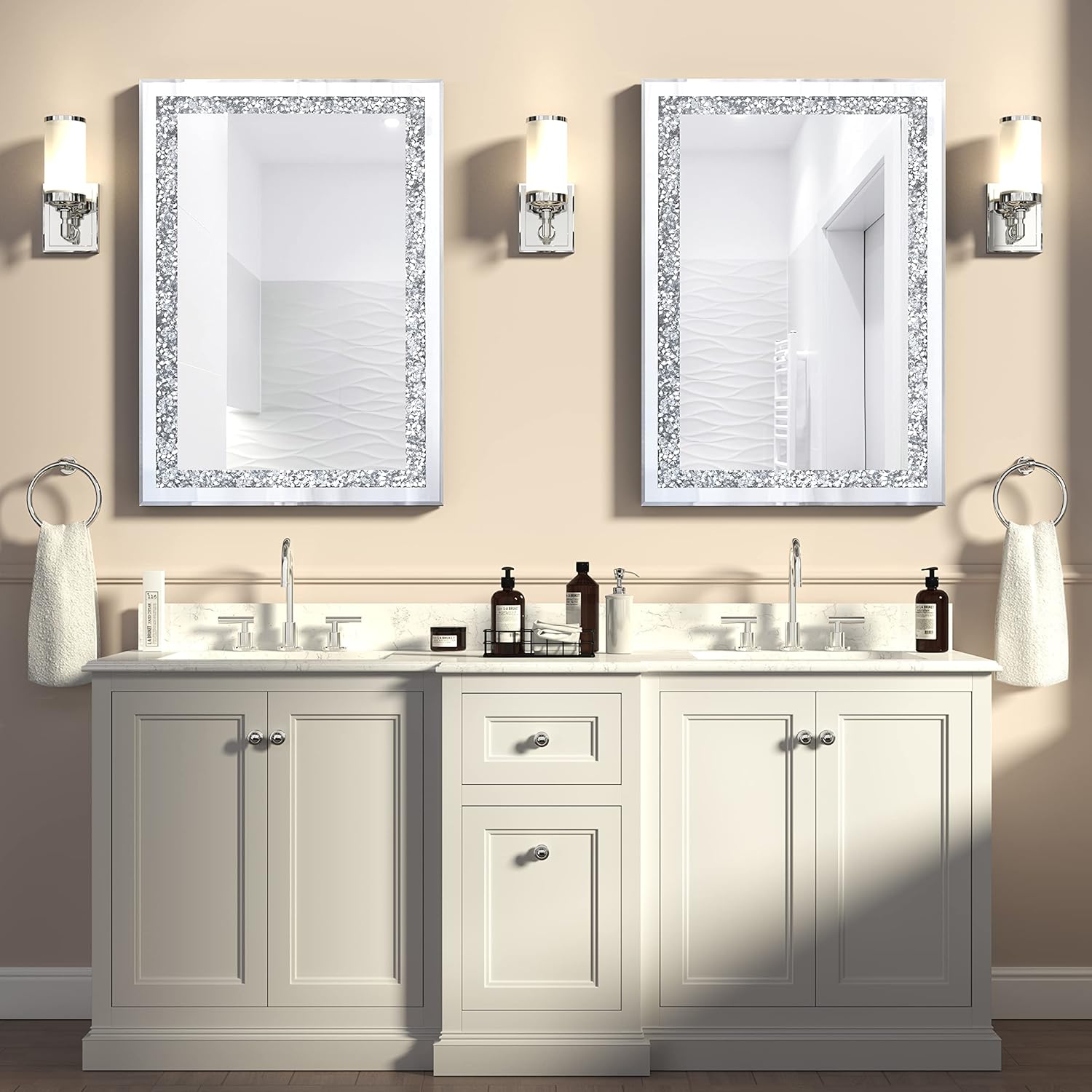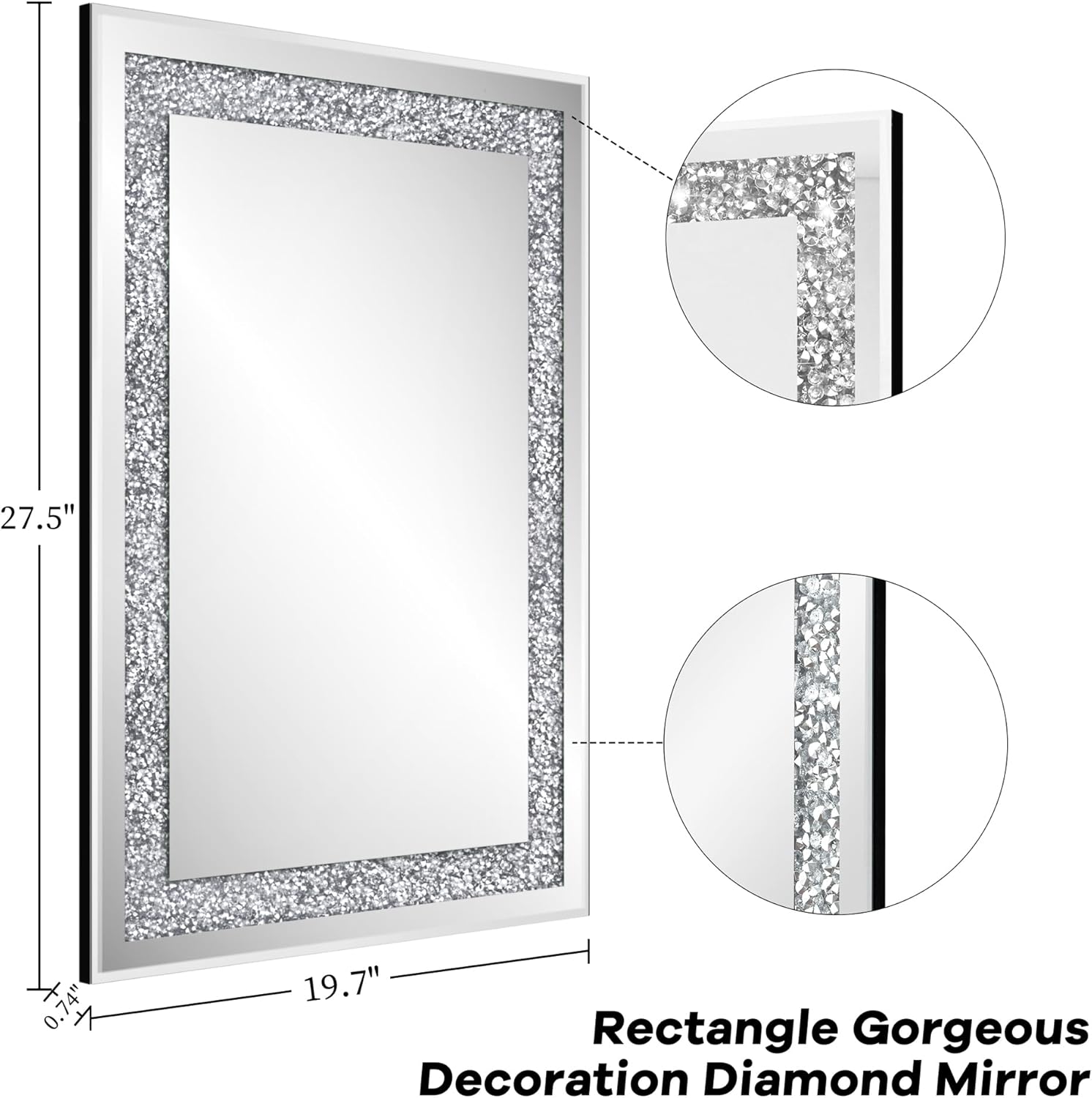 - Size:20"x28" of the mirrors for wall decor bedroom.The rectangle shaped frameless mirror design features sparkly twinkle bling crystal crush diamond