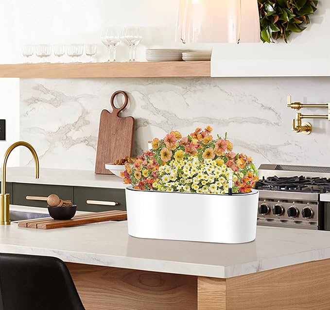 SAROSORA 16" Oval Self Watering Planter with Water Level Indicators for Plants & Flower Home Garden Outdoor Indoor Succulent | Herb pots | Window Box (1, Oval, White)