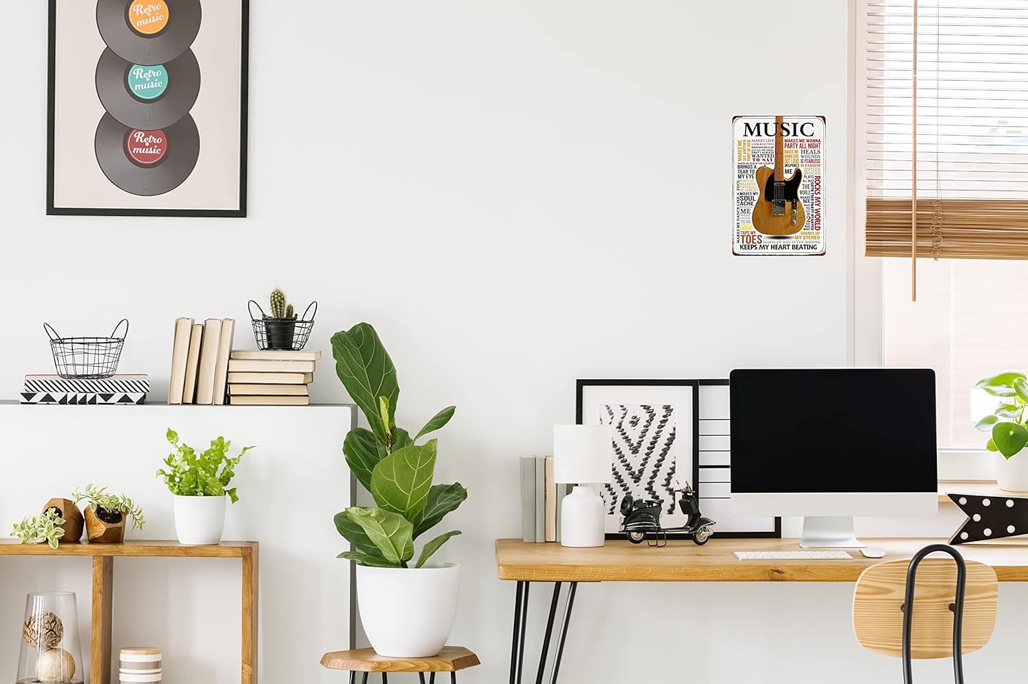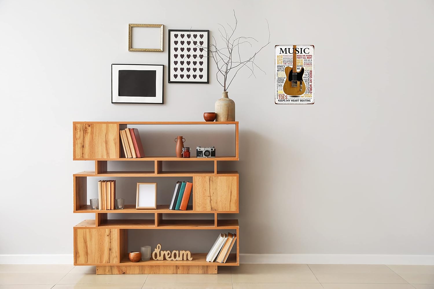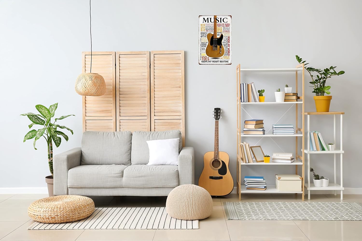 Guitar Metal Signs Vintage Rock Music Wall Decor Man Cave Tin Sign Gym Pool Bar Bathroom Yard Garage Signs Music Keeps My Heart Beating 8x12 in
