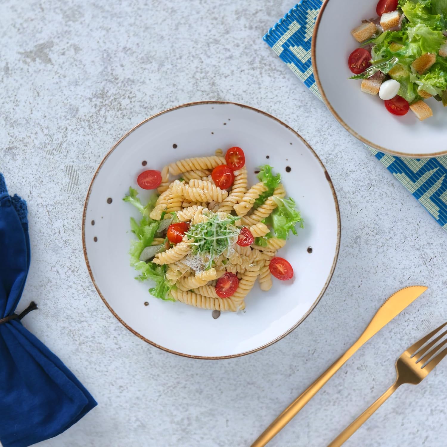 - Sturdy Ceramic Pasta Bowls: Made of durable porcelain, lead-free and chip-resistant, smooth glaze.High Quality & Good Thickness to give your hand a comfortable feeling to hold on to. It is Microwave Safe, Dishwasher Safe, and Oven Safe. Convenient to microwave without burning hands and oven, microwave safe.
