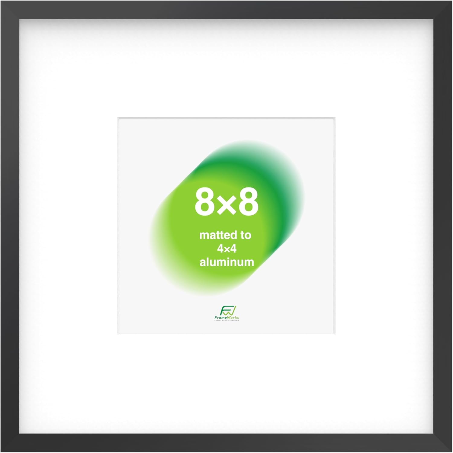 FrameWorks 8x8 Matted to 4x4 Picture Frame – Aluminum Frame w/Tempered Glass, Removable Mat for Photos, Posters, Art, Stylish Wall Frame for Home Decor, Gallery Walls, Office, Living Room - Black