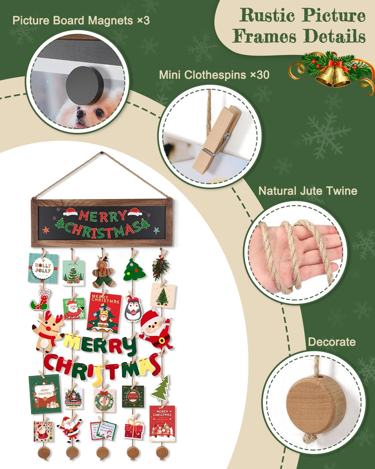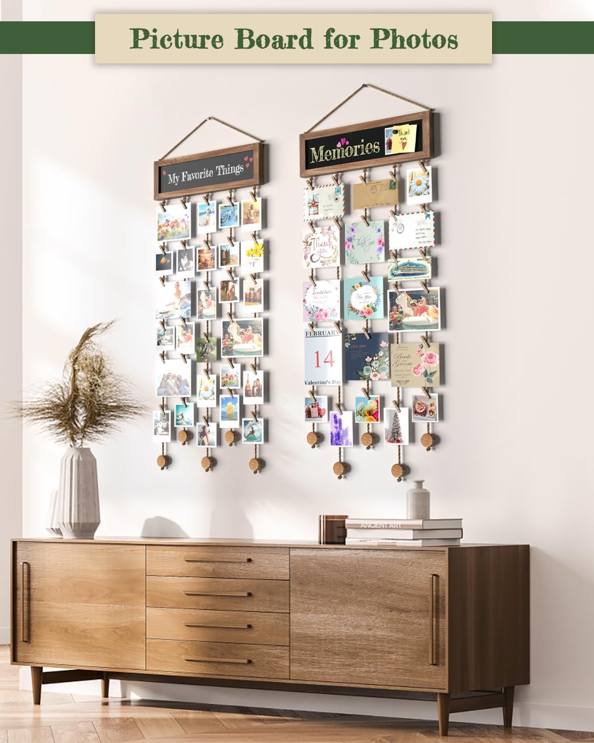- Multi Photo Display: 2-Pack Simple design collage picture frames with 60 clips, 6 magnets and 2 blackboards, you can cut the length of hemp rope as you want, which satisfies simple DIY design. What's more, it's easy to change the picture or cards with the 60 clips