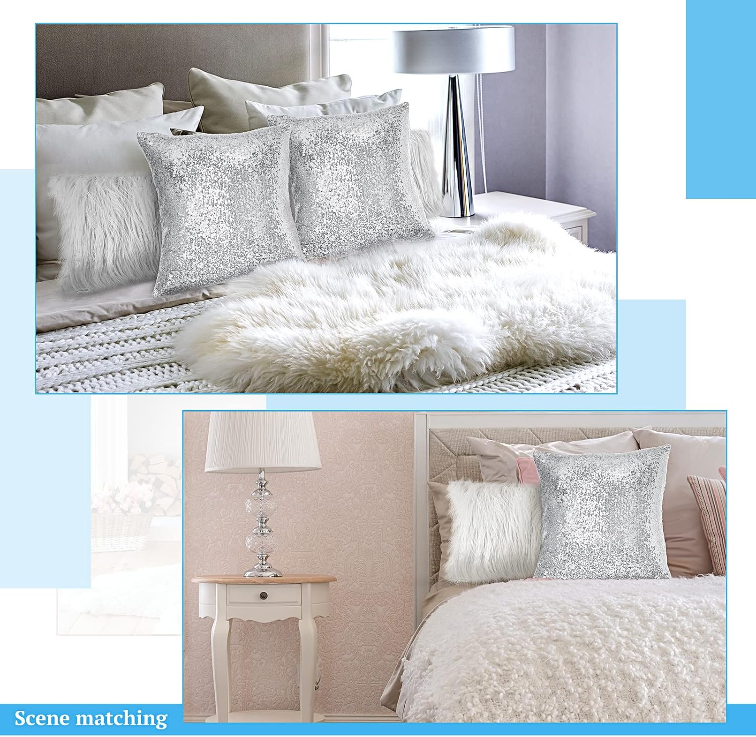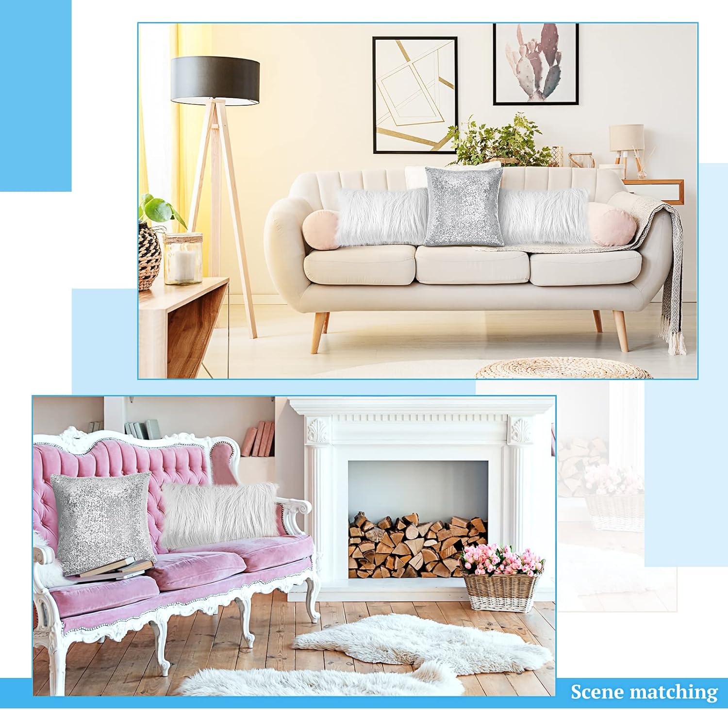 - Well made: the glitter decorative pillowcases are made of opaque sequin fabric, which is satin fabric embroidered with 3.0 mm shiny sequins, the sequins are also glitter and shiny; Faux fur throw pillow covers are made from polyester, soft and comfortable to touch, while possessing both decorative effect and practicability