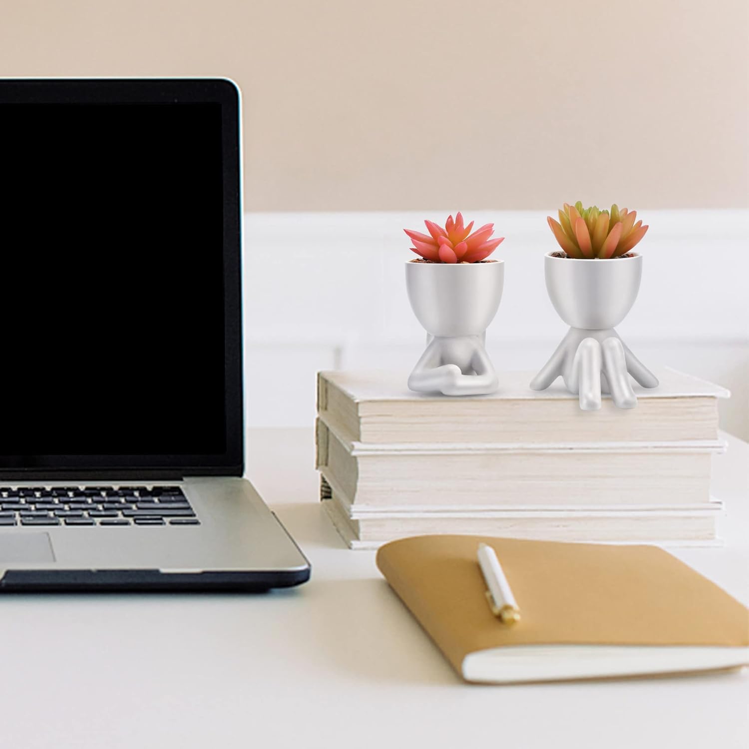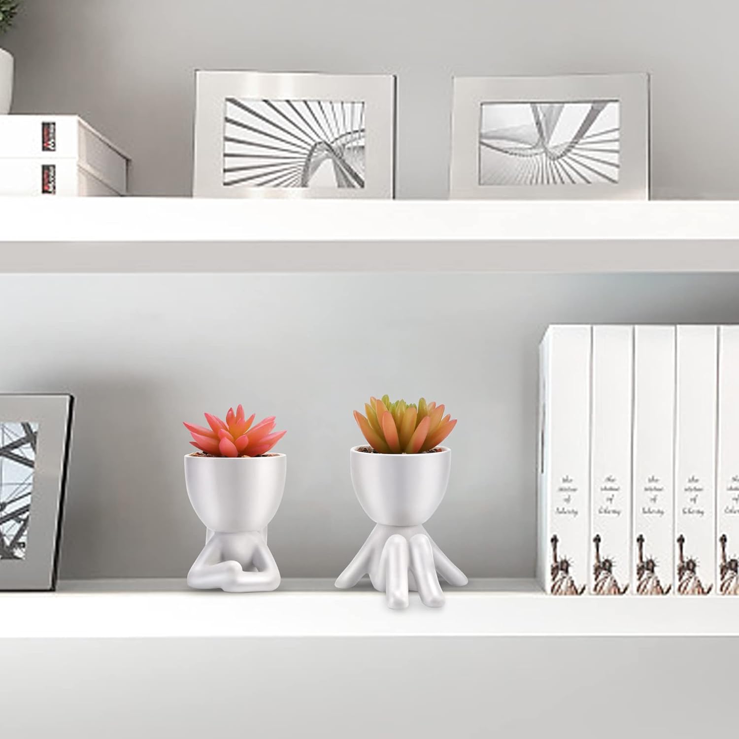 - 【UNIQUE POT DESIGN】 Style your home or office with these adorable HUMAN STATUES potted with high quality faux succulent plants.