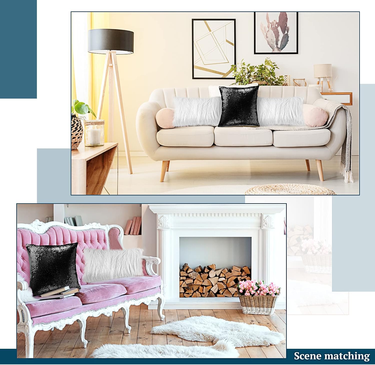 - Well made: the glitter decorative pillowcases are made of opaque sequin fabric, which is satin fabric embroidered with 3.0 mm shiny sequins, the sequins are also glitter and shiny; Faux fur throw pillow covers are made from polyester, soft and comfortable to touch, while possessing both decorative effect and practicability