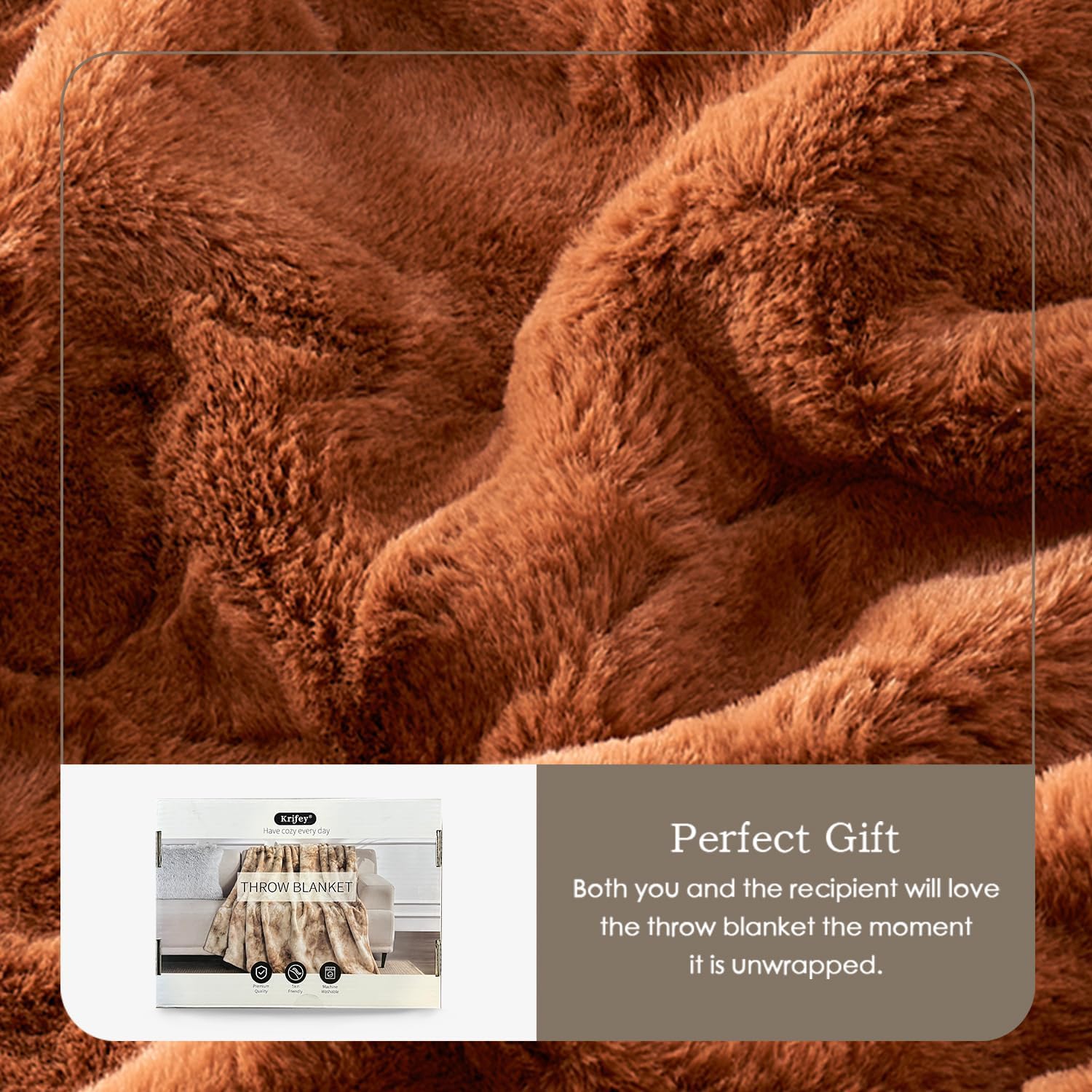 Krifey Oversized Faux Fur Blanket, Super Soft Cozy Blanket, Luxury Fluffy Throw Blanket Fuzzy Bed Throw, Plush for Women, Camel 60" x 80"