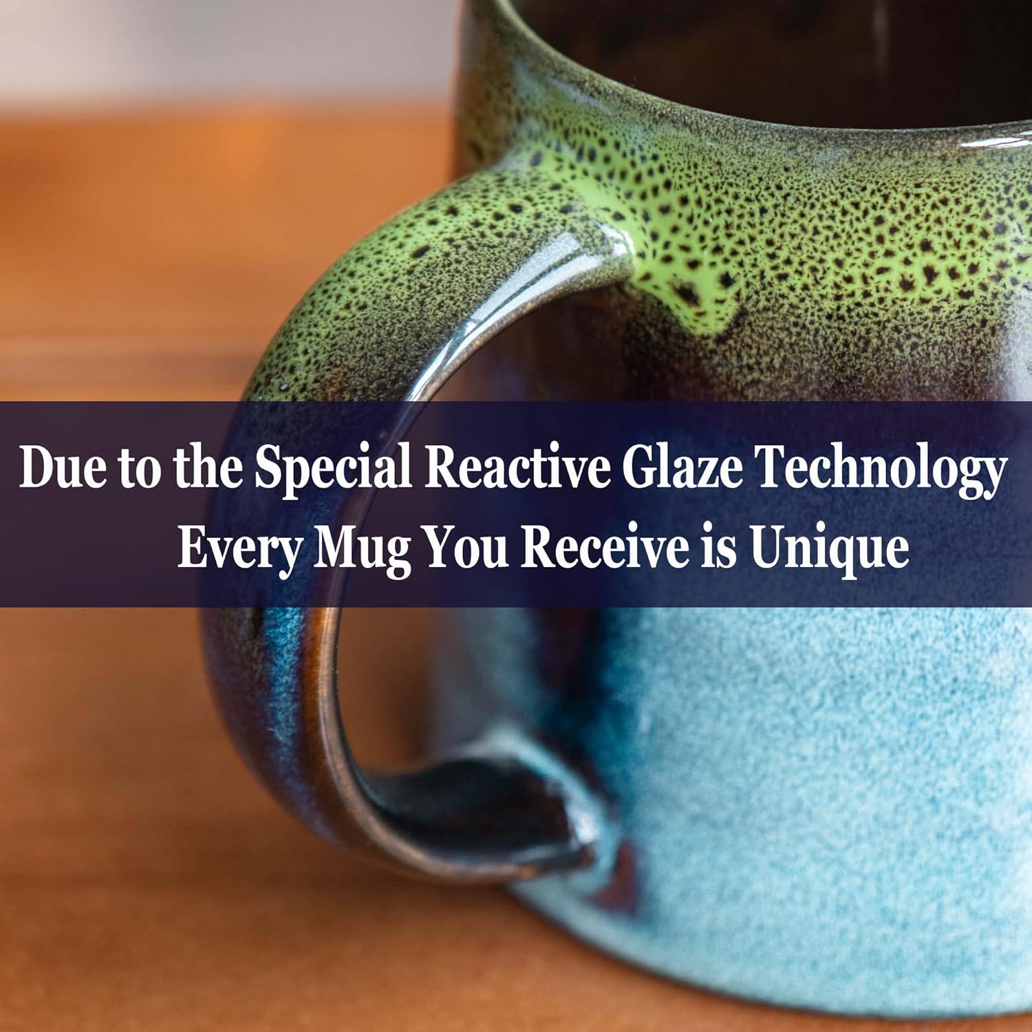 - UNIQUE GLAZE: The handmade pottery mug is unique for the special reactive glaze technology, you will be very surprised when you receive it. And the smooth and high quality glaze makes it very easy to clean