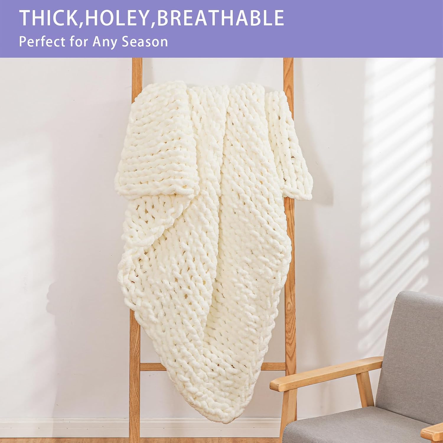 - Style : HOLEY is the special feature of chunky knit blanket, NOT quality issue.