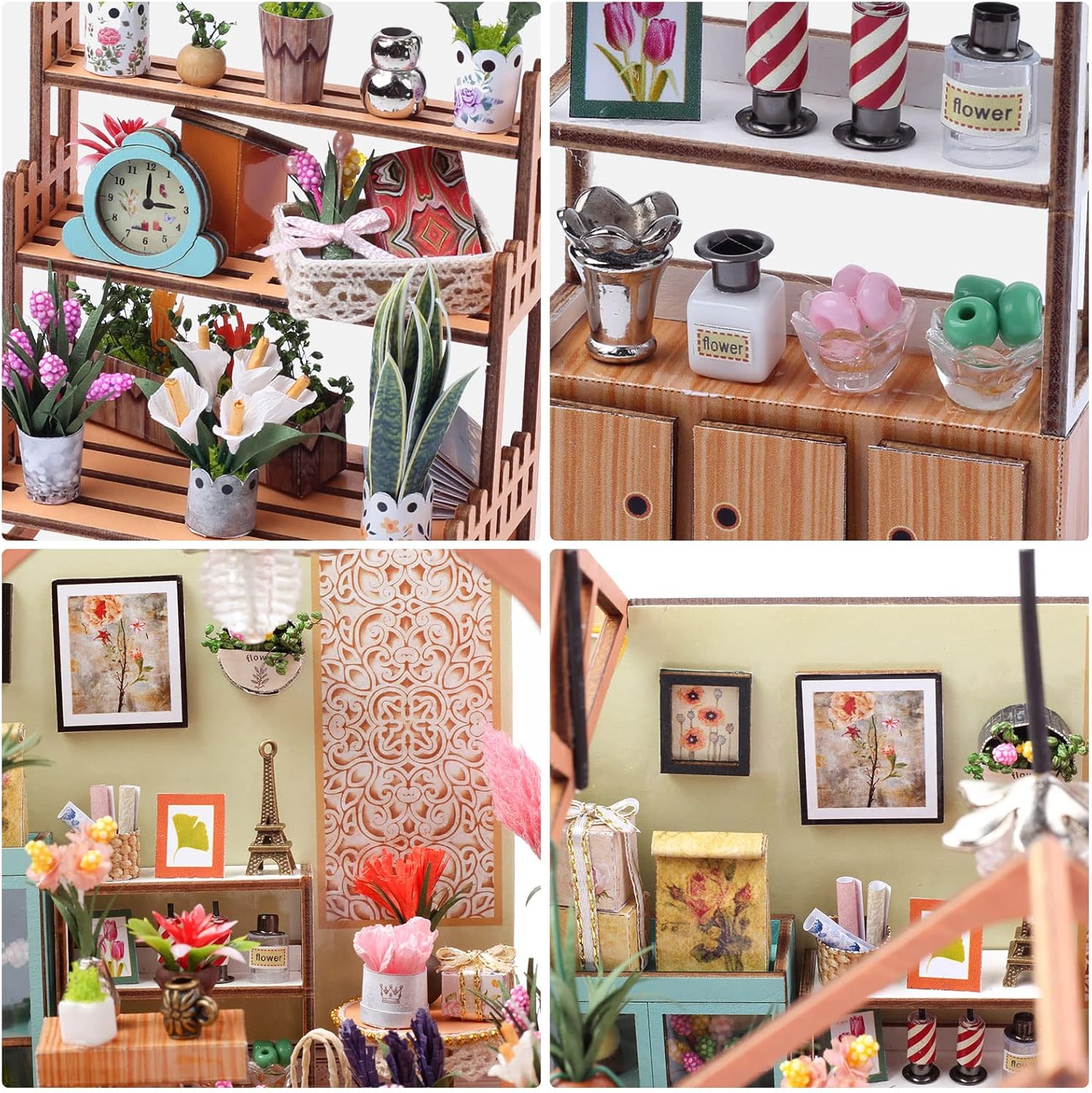GuDoQi DIY Miniature Dollhouse Kit, Tiny House with Furniture, 1:24 Scale, Handmade Gift for Birthday Christmas Day, Jenny Greenhouse Flower Shop