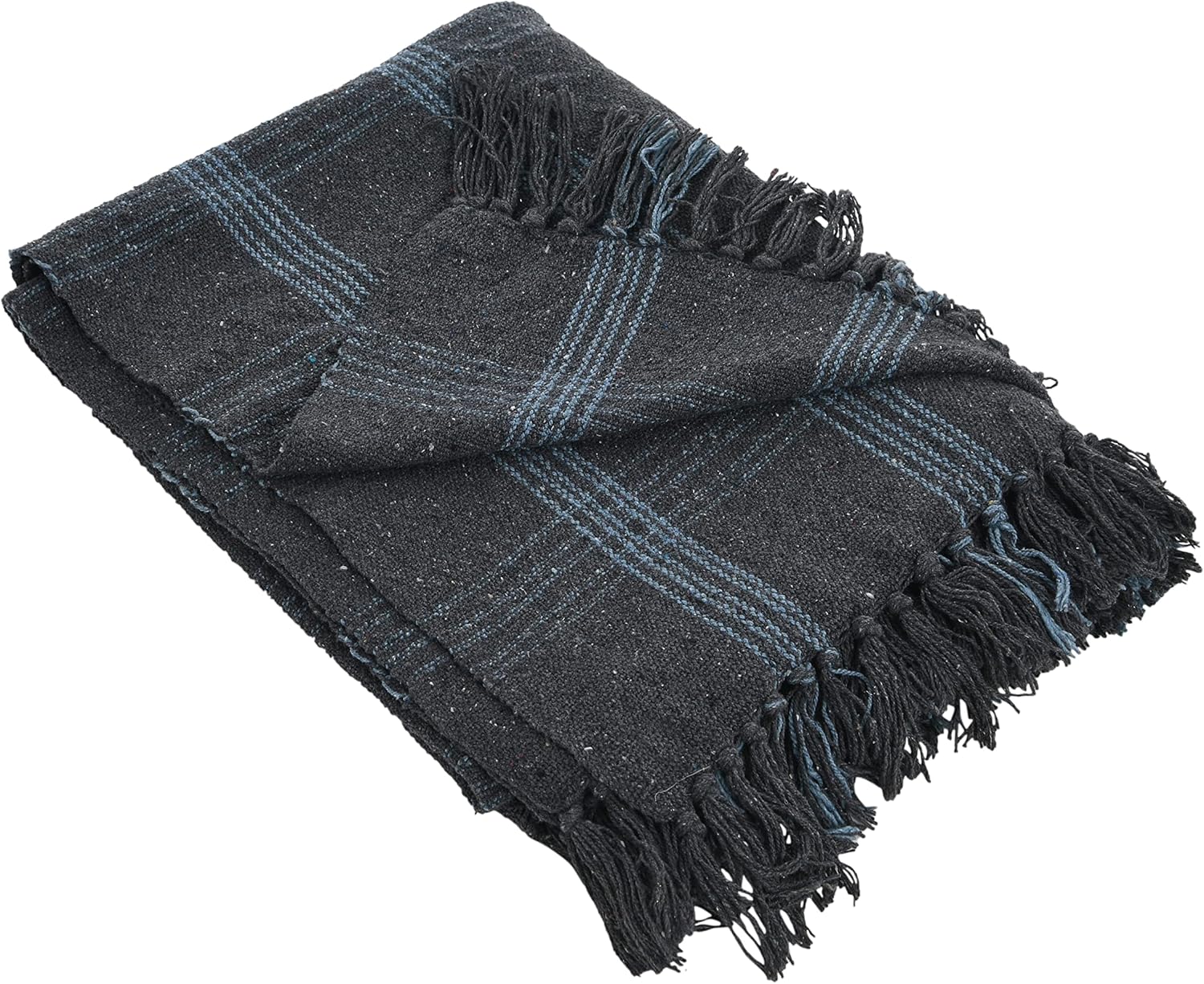 Creative Co-Op Recycled Cotton Blend Throw Blanket with Fringe, Grey Plaid