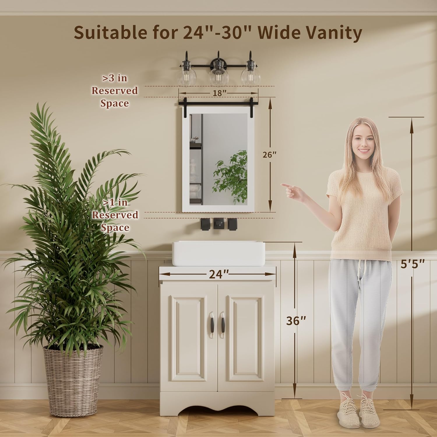 - Heavy Duty Wooden Frame: The mirror frame is made of sturdy wood with a barn door style for a rustic look.
