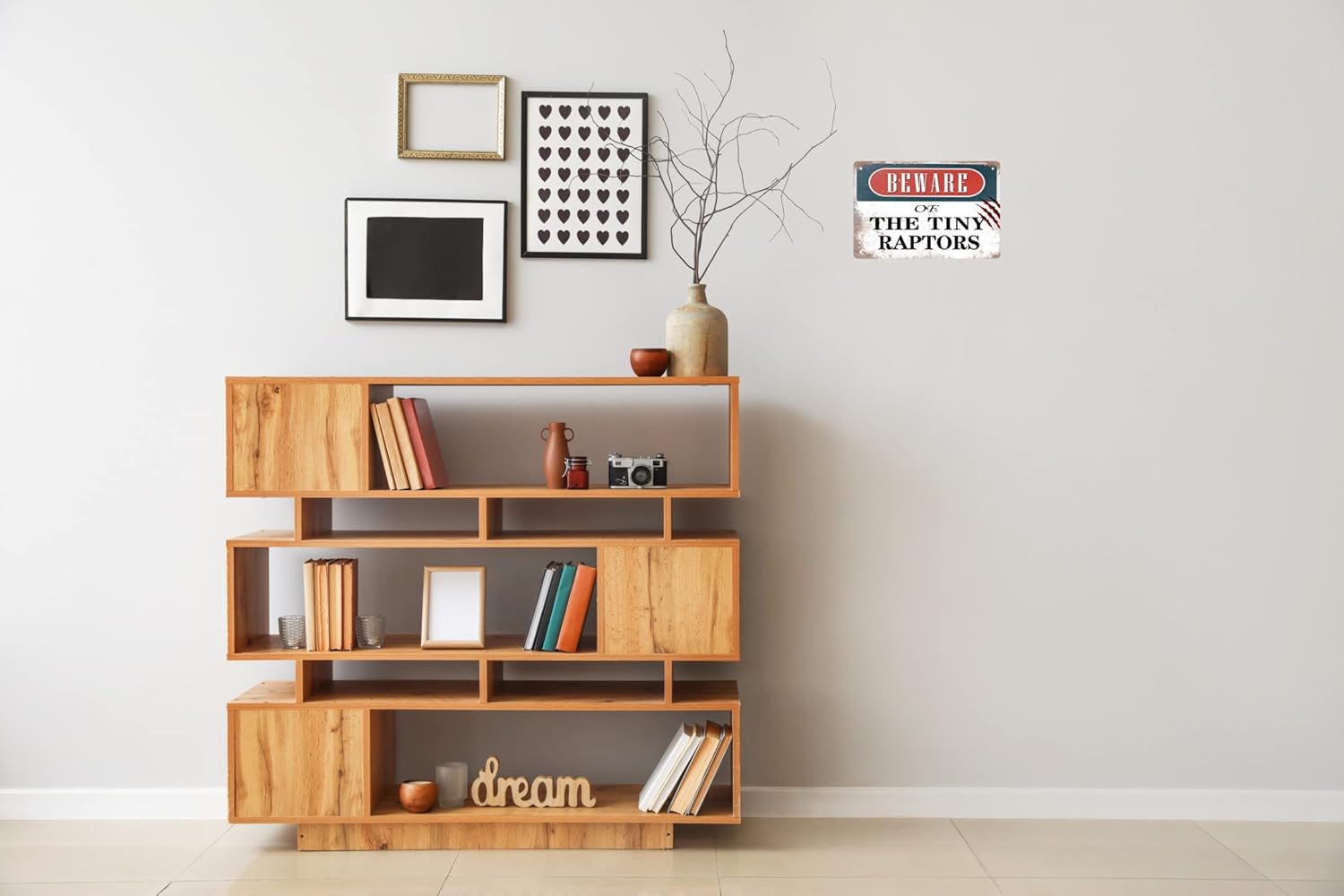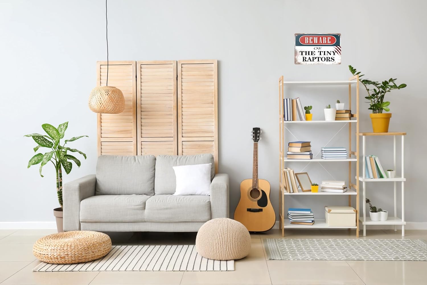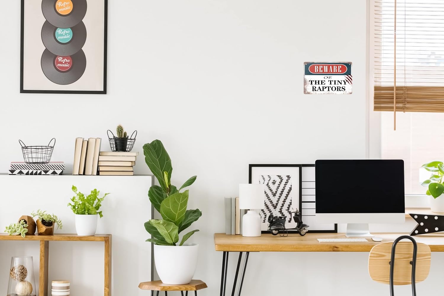 Funny Metal Tin Sign Decor Farm Fence Warning Sign Outdoor Chicken Coop Rustic Wood Decor Beware of The Tiny Raptors Home Room Vintage Wall Poster Art Gift 8x12 in