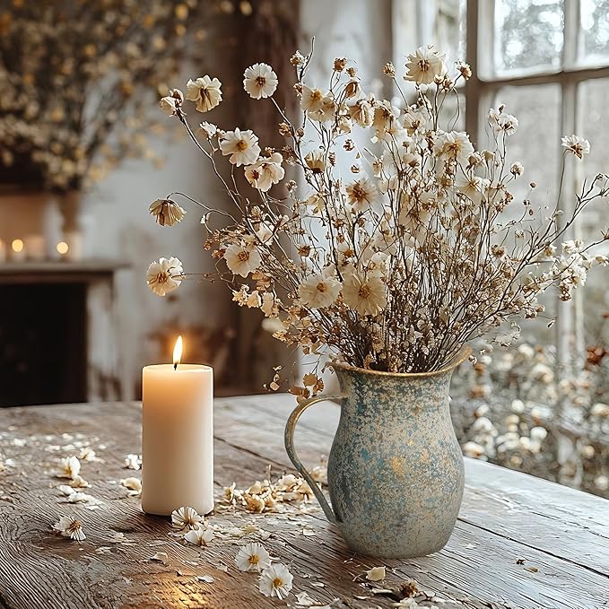 - VASE DECORATION: Its petite size allows it to fit great on coffee table, dining table or windowsill,table top decor adding a touch of farm cottage style to your home.Perfect for artificial flowers. In addition, this vase can also stand alone as a decorative piece