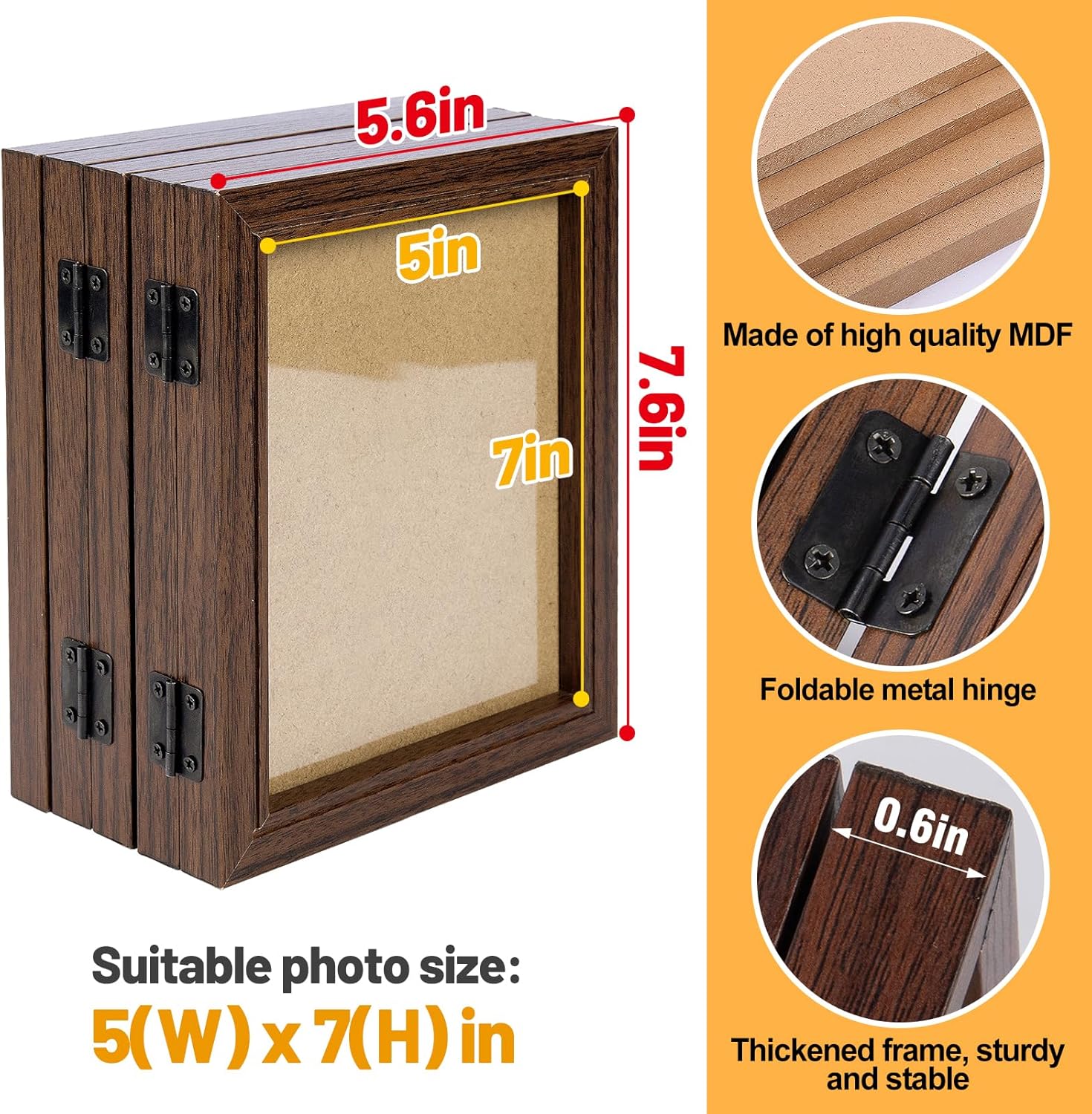 - Picture Frames Set: It is pentafolded and perfect for placing 5 x 7 inches pictures, postcards, dried flowers or other meaningful photos. Pentafolded design makes the frames can be folded to multi-angles, and attached high-definition acrylic sheet can protect the pictures in the frame from dust/damage and clearly show the beauty of pictures fully, save your precious memories.