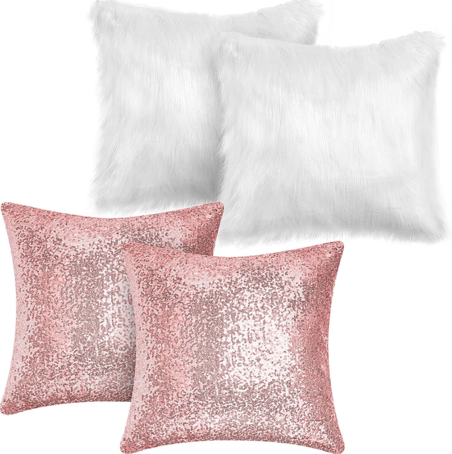 - 2 Styles: there are 4 pieces decorative pillow cases in 2 styles, including 2 pieces with reversible flip sequin design and 2 pieces with fluffy design, with charming color decorated, you can choose the style you want to match your room style or furniture style, enough quantity also support your replacing need