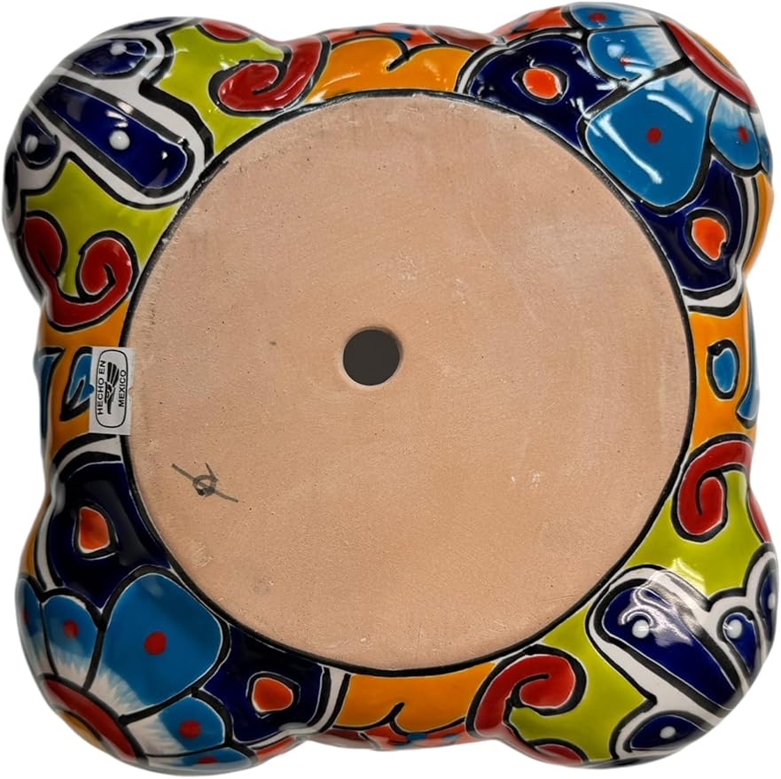Talavera Strawberry Planter Pot Handmade Multicolor Ceramic Mexican Pottery Hand Painted Indoor Outdoor Home Decor Diameter 11" (Cobalt Multi)