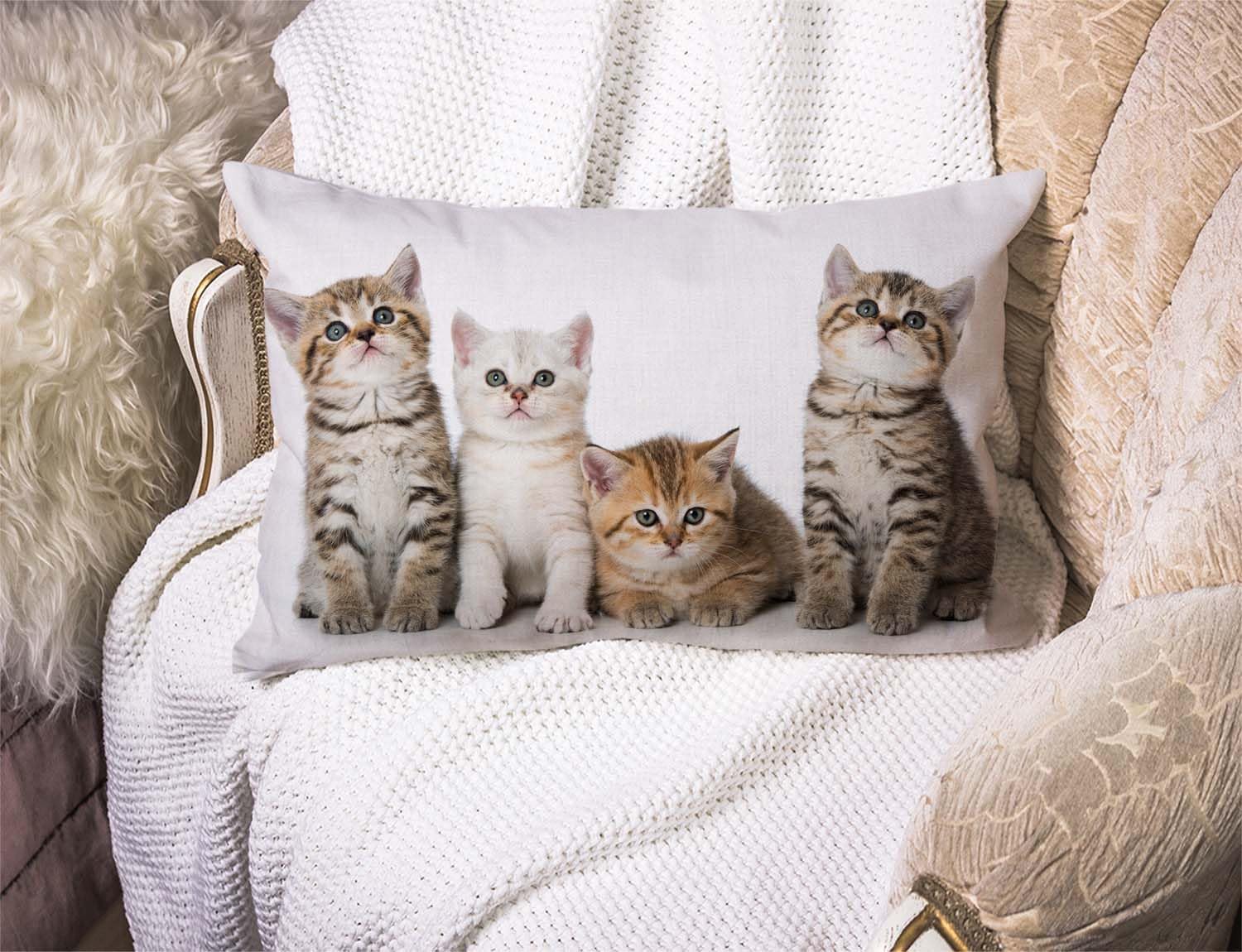 Colourful Creative Cared Cats Cotton Linen Decorative Throw Pillow Case Cushion Cover Pillowcase for Couch Sofa Bed,12 X 20 Inches