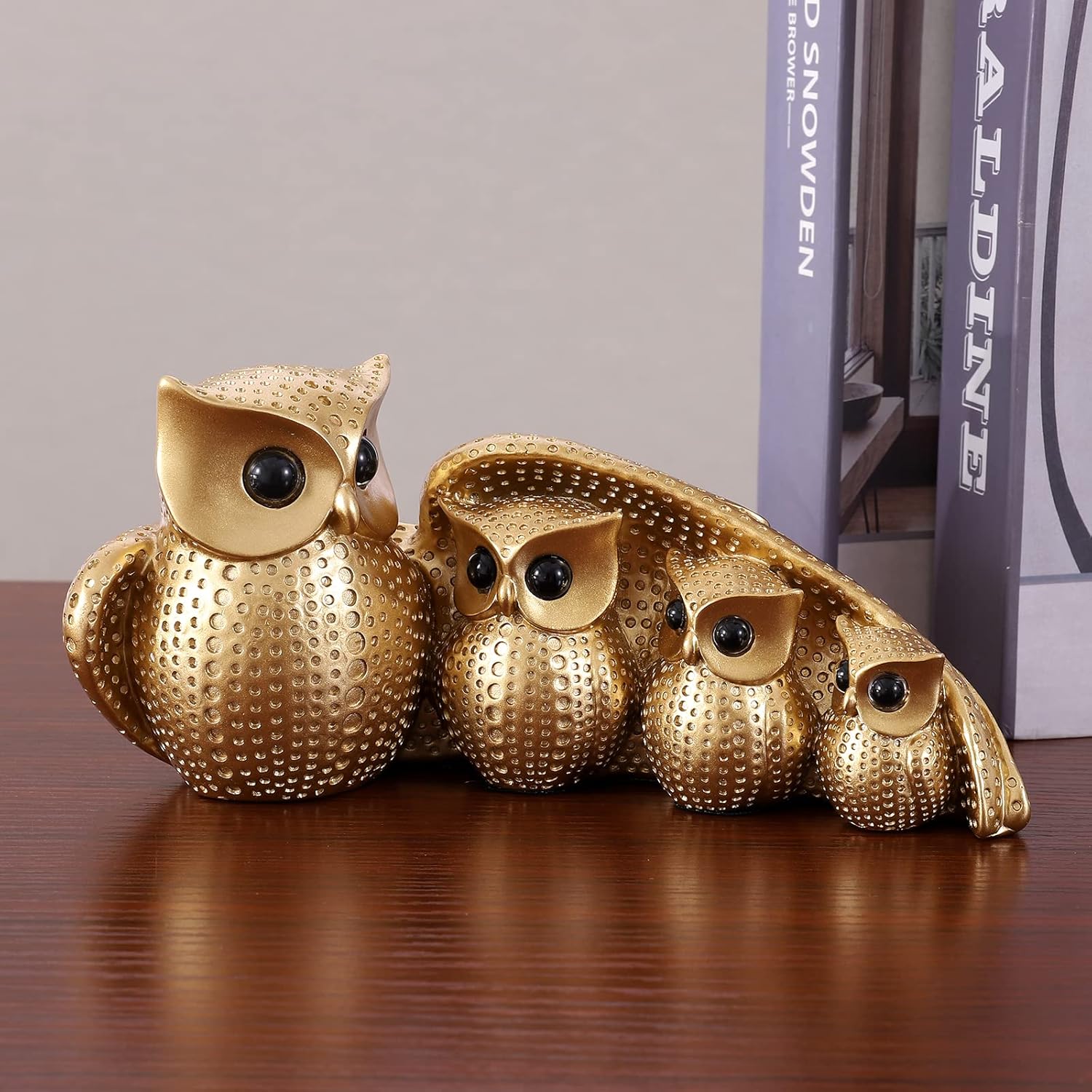 Cute Family of Four owl Figurines Home Décor Sculpture with Three Baby Owls Décor for Shelf Gifts Decoration for Birds Lovers Home,Office, Bookself