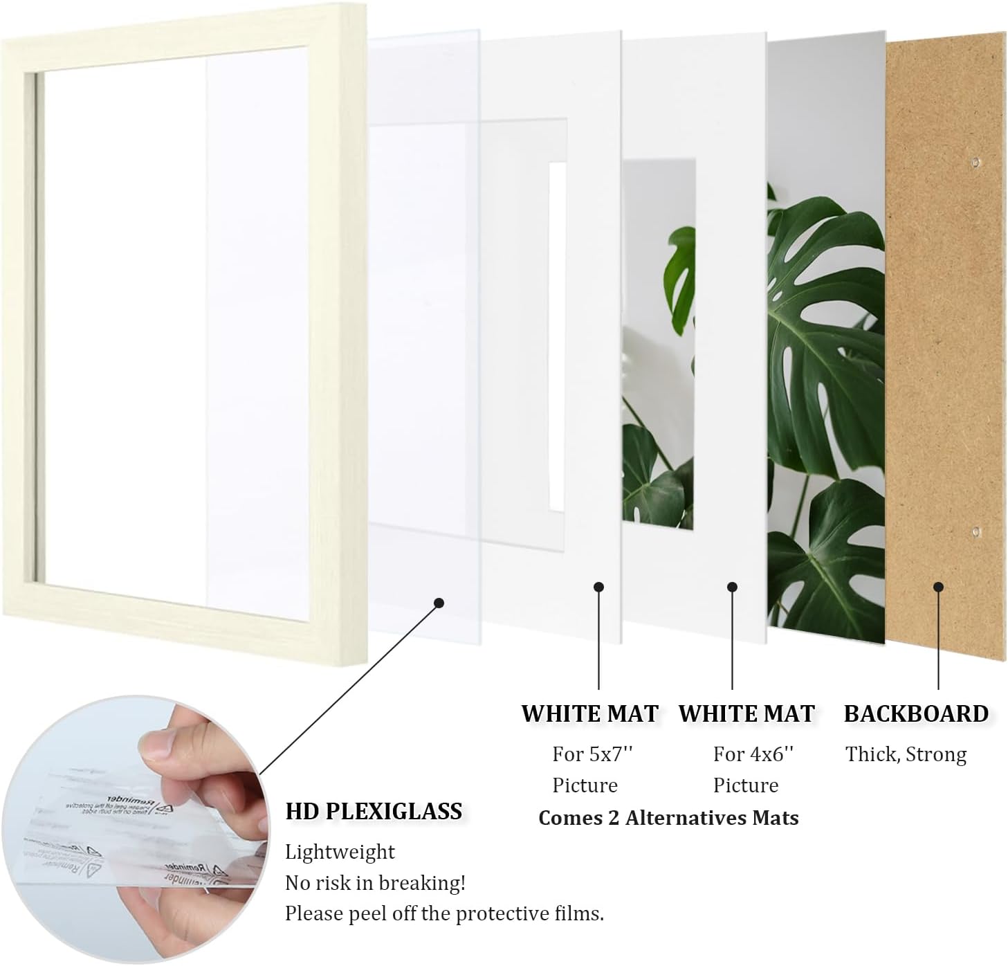 Egofine 8x10 Picture Frames Set of 4, Made of Solid Wood Covered by Plexiglass 4x6 and 5x7 with Mat or 8x10 without Mat, for Table Top Display and Wall Mounting Photo Frame Beige