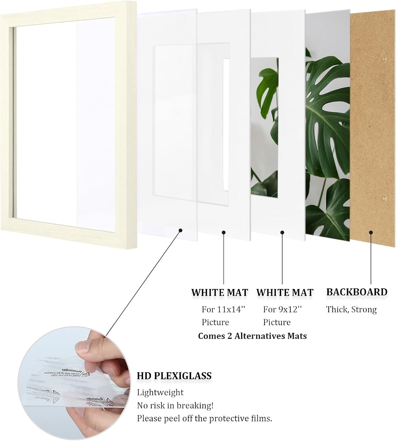 Egofine 12x16 Picture Frames Set of 4, Made of Solid Wood Covered by Plexiglass 9x12 and 11x14 with Mat or 12x16 without Mat, for Wall Mounting Photo Frame Beige