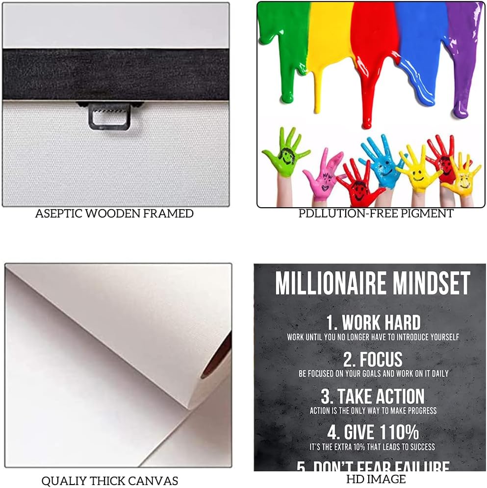 Millionaire Mindset 7 Rules Motivational Wall Art Inspirational Canvas Prints Positive Quotes Poster Success Artwork Office Picture Wall Decor Modern Home Decoration Framed- 24 x 36 inch